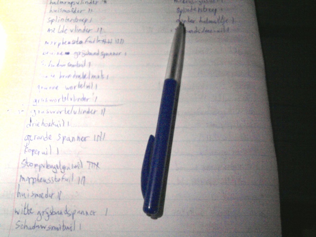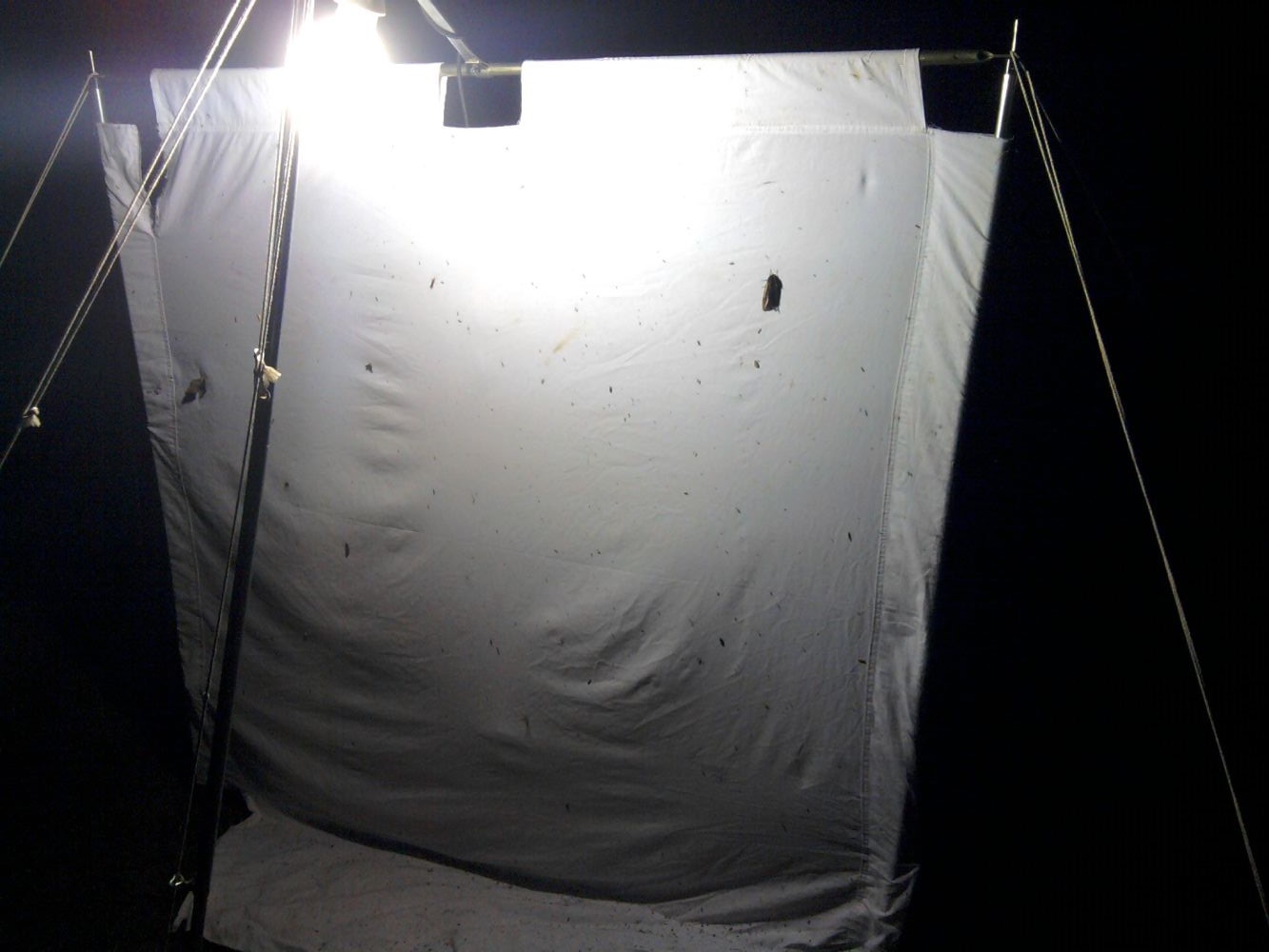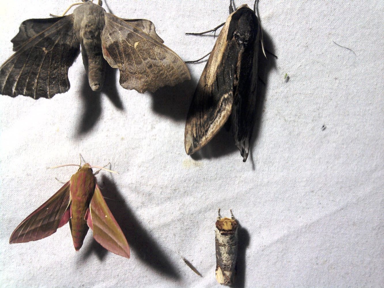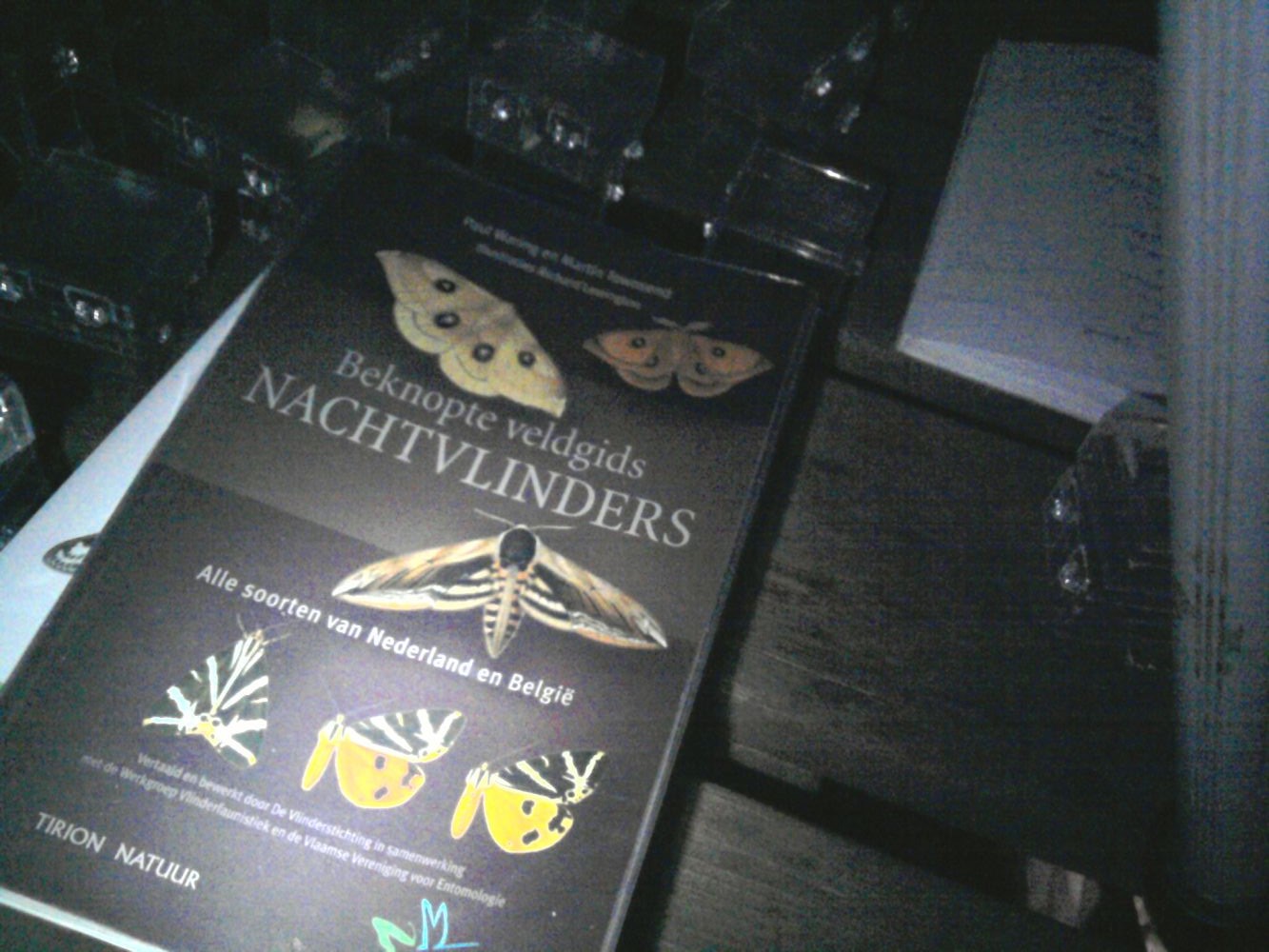 Jeroen, Robert en Merel zijn al druk bezig; Jeroen speelt voor notaris en noteert per halfuur de soorten en aantallen, en dat zijn er nogal wat. Robert en Merel zijn druk bezig met een net om vlinders te vangen, deze in bakjes te doen en ze over te leveren aan Jeroen. Bij aankomst zie ik dat ze al flink wat hebben gevangen, dus dat belooft wat. Even later neem ik de taak van Merel over, en mag ik mijn vangkunsten op het gebied van vlinders vertonen. En dat gaat me verrassend goed af. Met behulp van handige, kleine plasticbakjes zijn de diertjes makkelijk uit het net te halen. Direct na het vangen krijgt Jeroen ze. Hij brengt ze uiteindelijk in alle rust op naam. Het is deze avond overigens veel beter qua nachtvlinders in tegenstelling tot de week ervoor. Wellicht dat het de luchtvochtigheid minder is dan vorige week, waardoor meer vlinders gaan vliegen. De reden dat nachtvlinders op fel licht afkomen heeft te maken met de maan. Zodra het bewolkt is en de maan niet te zien is, raken de vlinders in de war, en zien als het ware fel licht aan voor de maan. Het resultaat: leuke aantallen vlinders rondom onze lamp op het witte doek en die van het toiletgebouw op de camping. Ook rondom bijvoorbeeld lantaarnpalen zijn vaak veel nachtvlinders te zien, waar foeragerende vleermuizen dankbaar gebruik van maken.