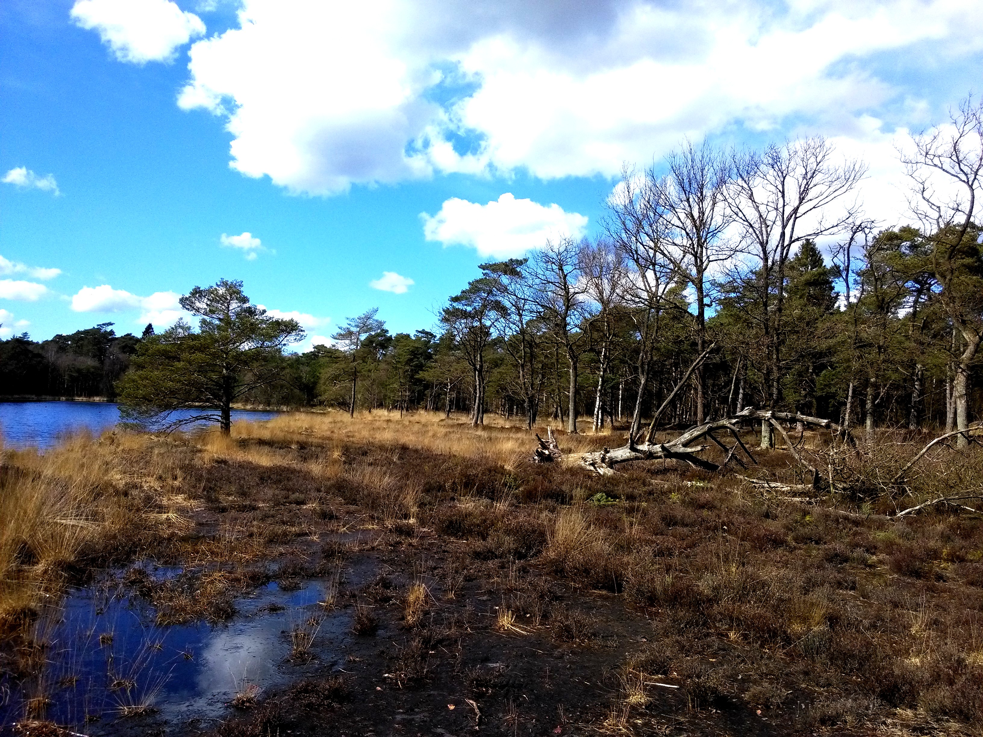 Bij het eerste heideterreintje/ven (Zie bovenstaande foto) wordt ik al snel blij als ik zie dat men hier bomen heeft gekapt om het terrein te behouden. Op deze manier blijven reptielen en amfibieënpopulaties gespaard, en hebben ook insecten zoals libellen en vlinders baat bij het natuurbeheer, omdat het terrein een open karakter behoud, zodat er genoeg zonlicht opgevangen kan worden voor deze warmteminnende dieren om actief te kunnen zijn (Voortplanten, zonnen, jagen etc). En ja, ik tref drie Levendbarende Hagedissen aan in het terreintje.