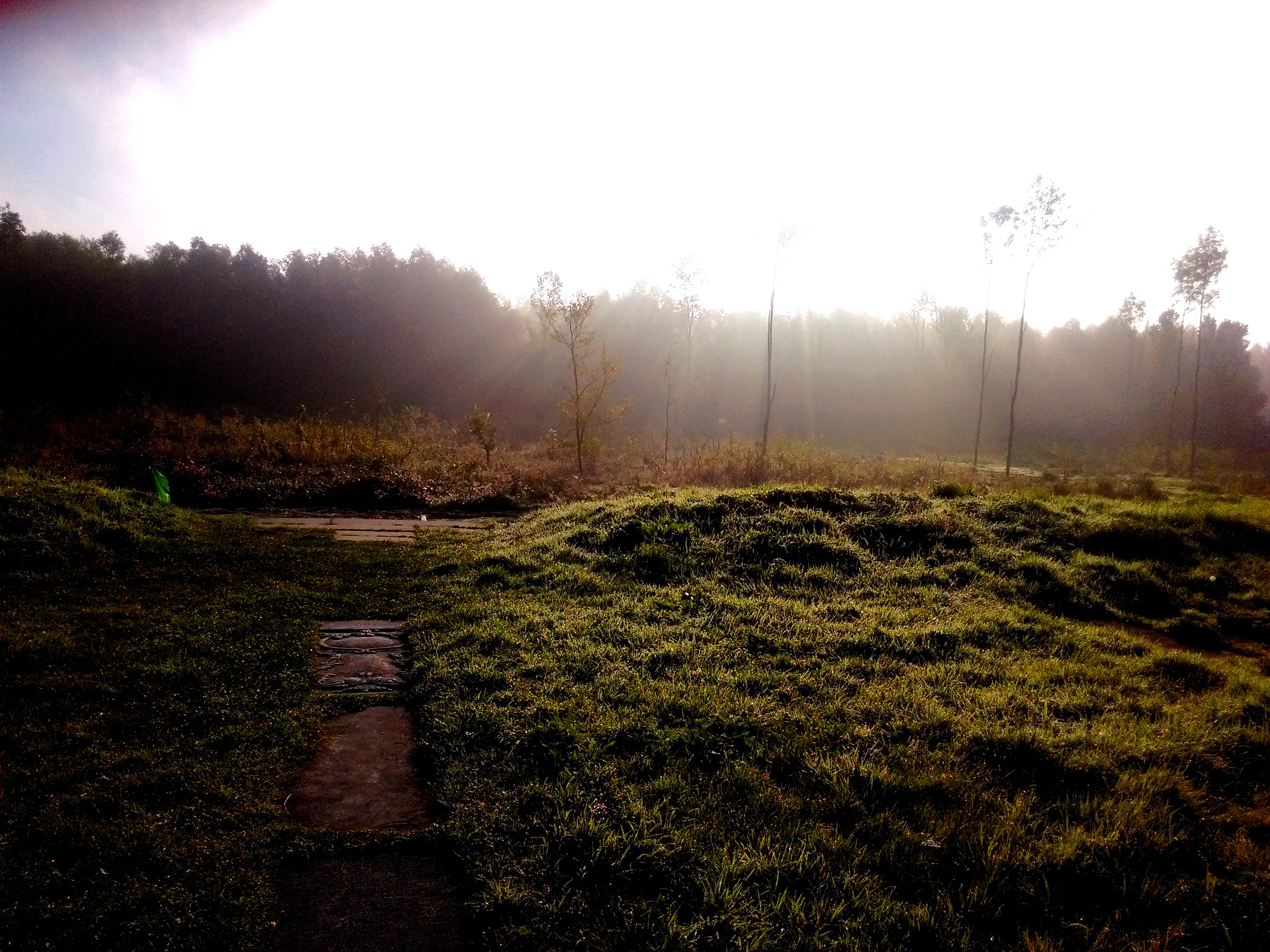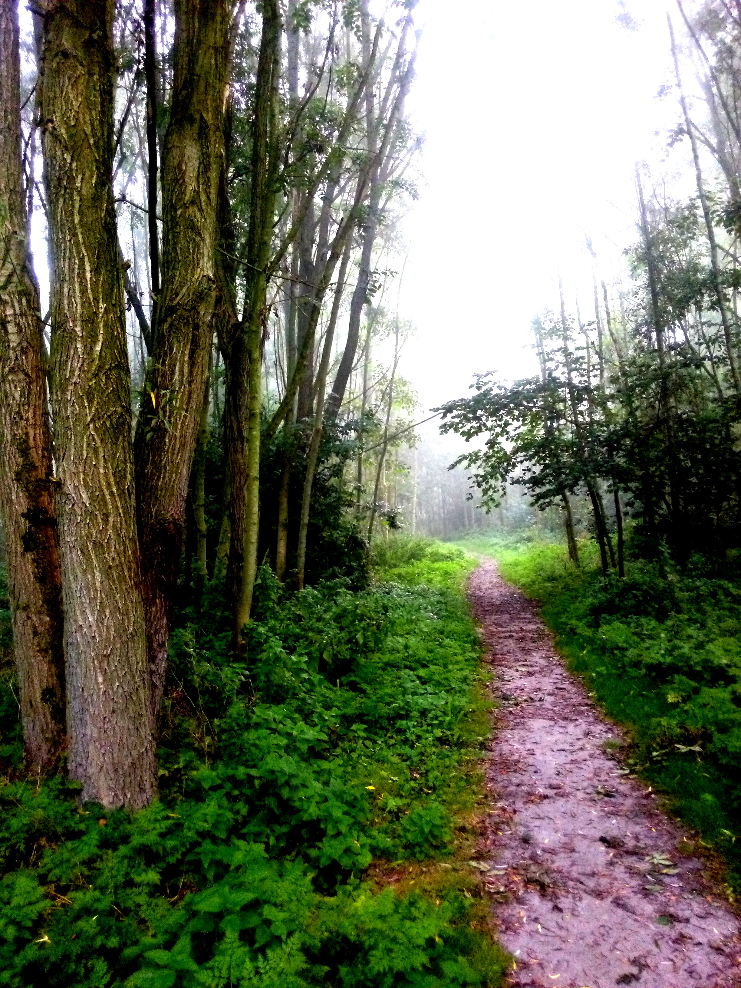 Zaterdagochtend 3 oktober 2015, 08:00. Ik loop vanuit de Leeuwarder woonwijk Bilgaard het Leeuwarderbos in. Moderne bebouwing gaat geleidelijk over in een wildernis van sloten, plasjes, grasland en bos. Het is alsof ik een andere wereld binnen stap, zeker dankzij de overheersende grauwe mist die de bebouwing snel doet vervagen. In het grasland ontwaren zich enkele grazende Schotse Hooglanders, over een sloot scheert een felblauwe flits, een IJsvogel met zijn hoge roep die al snel uit zicht verdwijnt. Geen mens te zien, een bijna sprookjesachtig begin van de dag.