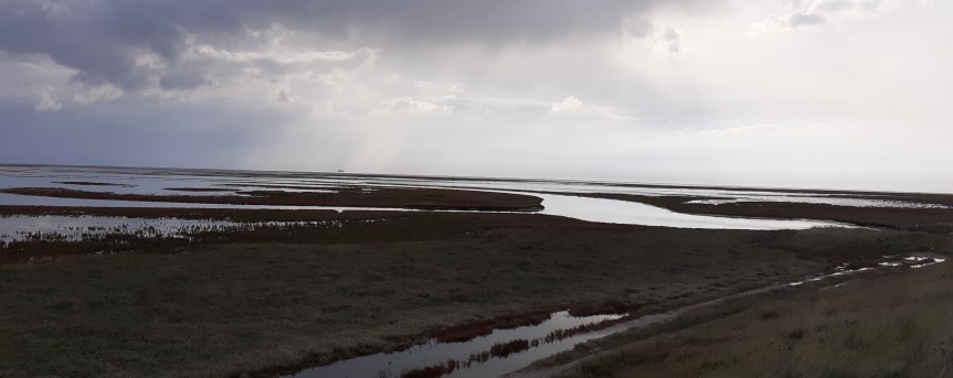 De Kortteenleeuwerik blijkt alles behalve een makkie. Tussen lage kweldervegetatie zou de vogel zich ergens verschansen. Het is weer een gezellig samenzijn met vele goeie bekenden. Na een tijdje te hebben gezocht over de natte kwelders wordt de vogel door iemand vliegend opgemerkt. Zou ergens verderop weer geland zijn. Het duurt gelukkig niet lang of de vogel is weer in beeld en kan door iedereen mooi worden bekeken. En daar blijft het niet bij, als bijvangst scoren we een Roodkeelpieper, halleluja.