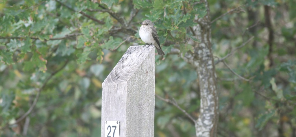 We zien hier twee nieuwe weekendsoorten, een Paapje en Gekraagde Roodstaart. Ik zie nog kortstondig een Bladkoning in de bosjes bij de nieuwe kooi. Nog een handjevol Tapuiten, Beflijsters en opvallend veel Roodborsttapuiten. Nog een laatste poging voor Klapekster, maar nee, deze is ons niet gegund dit weekend. Op Lange Paal tijdens de lunch nog een Grauwe Vliegenvanger op een paaltje.