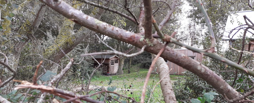 Een paar minuten later wordt de vogel weer vliegend gezien en trek ik een snelle sprint. Vogel is iets links van het tuintje een bosje in gevlogen en moet daar ergens zitten. Even wachten en al gauw vliegt de vogel weer op en is even mooi te zien. Een bruin tot goudgele lijster ter grootte van een Houtsnip lijkt het, met zwartwit ondervleugelpatroon. Fan-tas-tisch! De Goudlijster, die ene droomsoort, eindelijk met eigen ogen gezien. Kort maar krachtig, op het netvlies. Vanaf een hoger gelegen stuk zie ik de vogel nog enkele keren mooi langsvliegen.