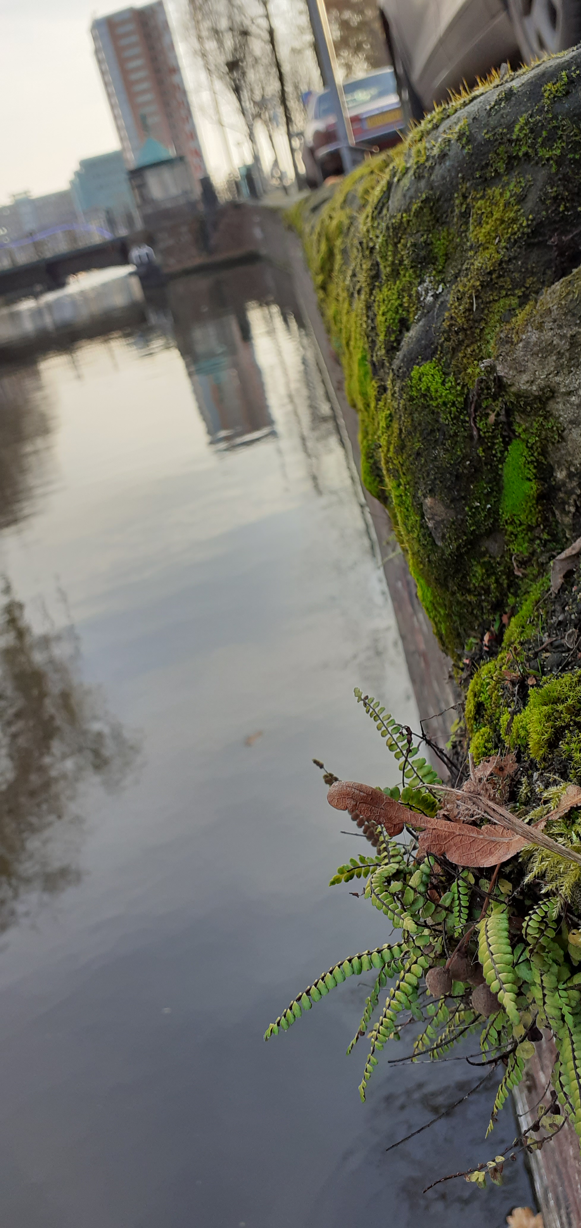 Vandaag (25-11), op een mooie zonnige novembermiddag, maar weer eens de sfeervolle binnenstad van Groningen in gegaan, samen met Siska. We maken een lange wandeling door de stad, langzaam richting het Noorderplantsoen. Langs de Sluiskade en Pottebakkersrijge valt ons oog al snel op fraai begroeide muren en kades. Opvallend veel Muurvaren en het vrij zeldzame Steenbreekvaren, maar ook her en der een bosje Tongvaren. Mannetjesvaren en Eikvaren zijn ook present.