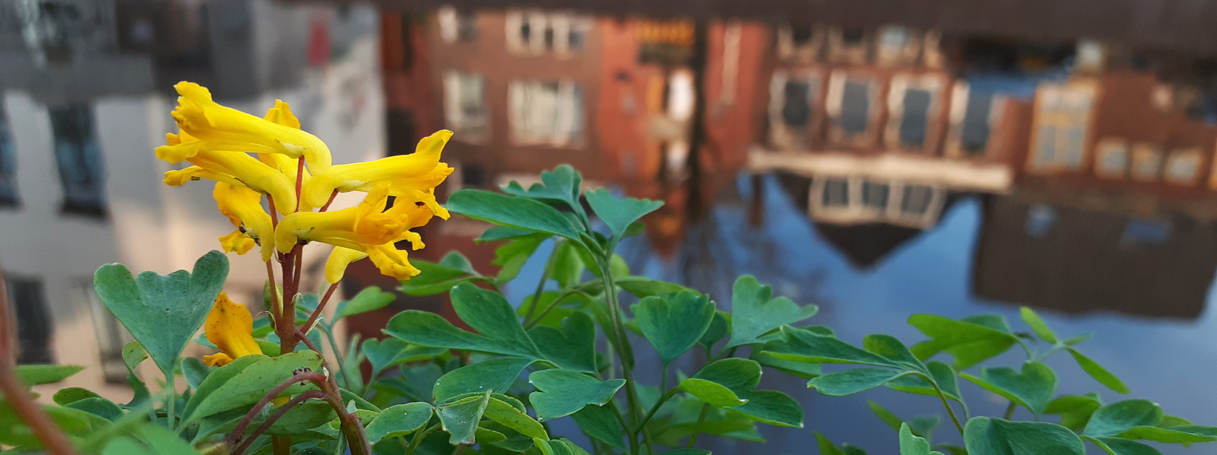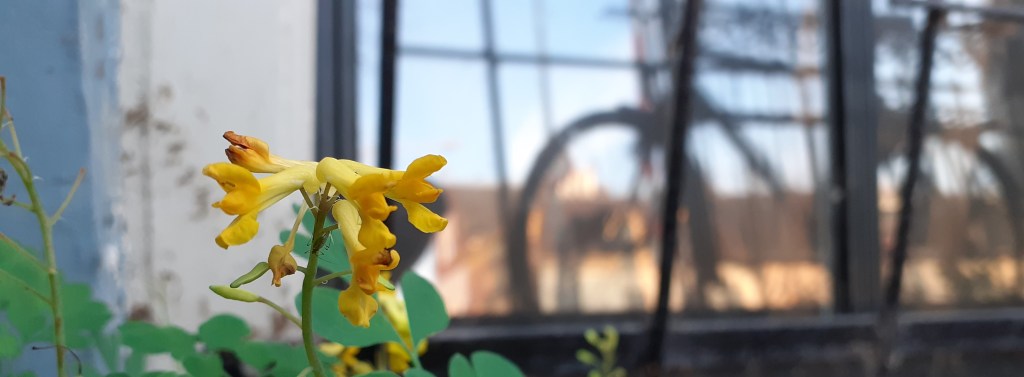 Bijzonder leuk is dat er nog opvallend veel laatbloeiers zijn van deze leuke plant. Vanaf een afstand lijkt het alsof er blinkend goud uit de muren groeit, schitterend. Hadden we een goudmijntje gevonden in Groningen? Het levert samen met het groen wat extra kleur in een verder toch wel asgrauwe omgeving. De kleuren spreken boekdelen. Eind november, en Gele Helmbloem bloeit in volle glorie. Wederom blijkt maar weer dat je zelfs op de meest druk bezochte plekken mooie natuur kunt vinden.