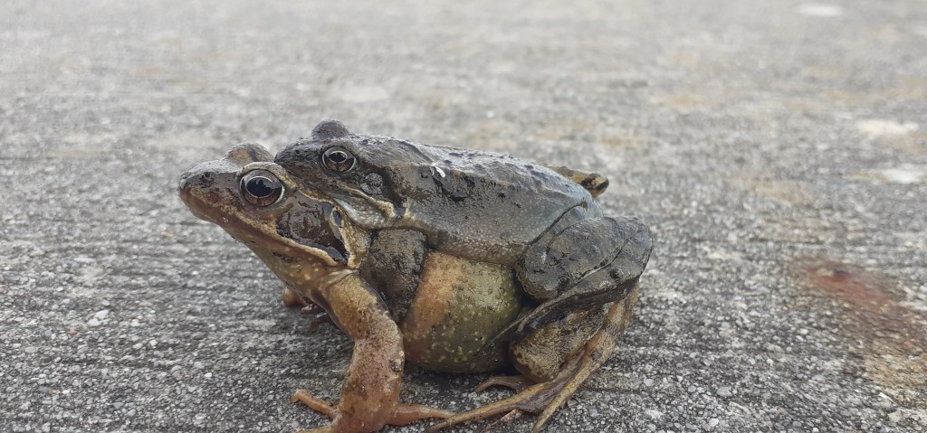 Nabij het informatiecentrum zien we al snel de laatste twee eendensoorten die nog redelijkerwijs mogelijk waren. Smient en Tafeleend, vlak bij elkaar. Ook zien we opvallend veel amfibieën, waarvan vele parende. Gewone Padden, Bruine Kikkers maar ook felblauwe Heikikkers. Ook hier weer Kraanvogels, twee vogels vrij dichtbij. Dan komt er een melding bij Folkert Jan binnen van een Koereiger bij Groningen. Deze wil Folkert Jan graag zien voor zijn jaarlijst, dus onderbreken we even onze big day en fietsen in rap tempo naar Veenhuizen.