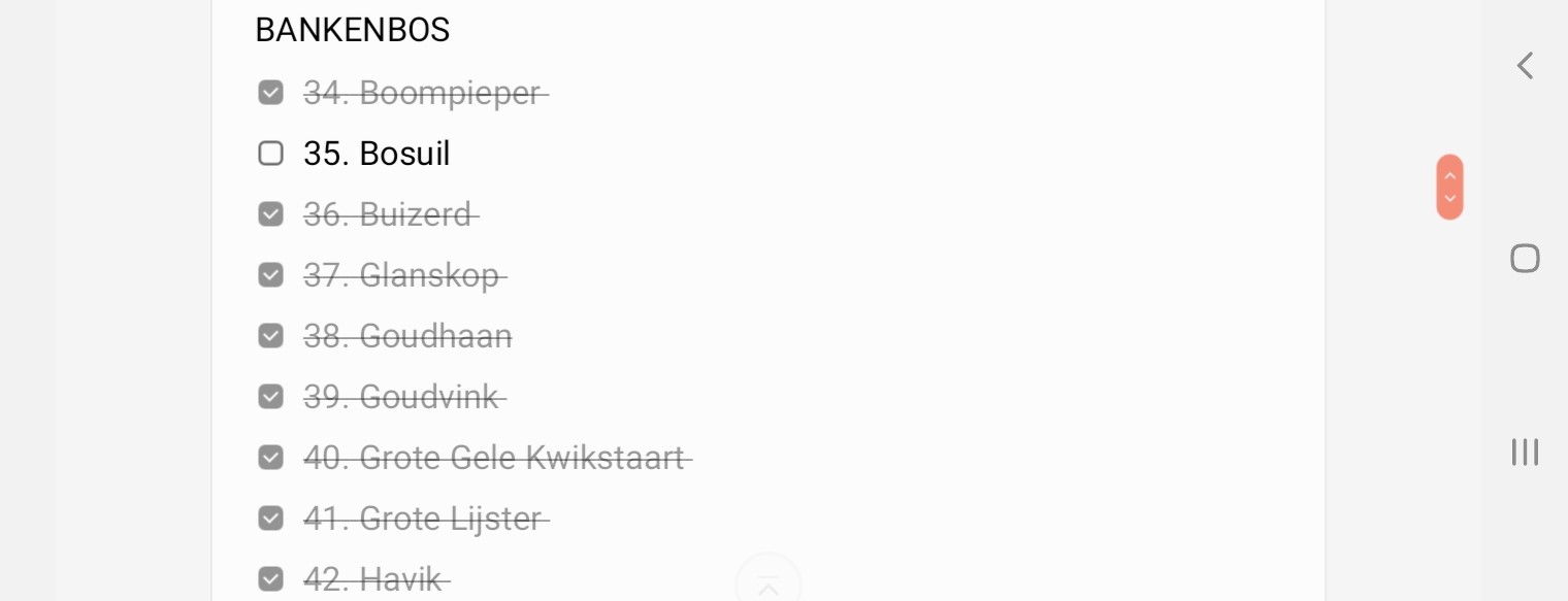 - Kruisbek (ze zitten er, maar je hebt er geluk voor nodig)