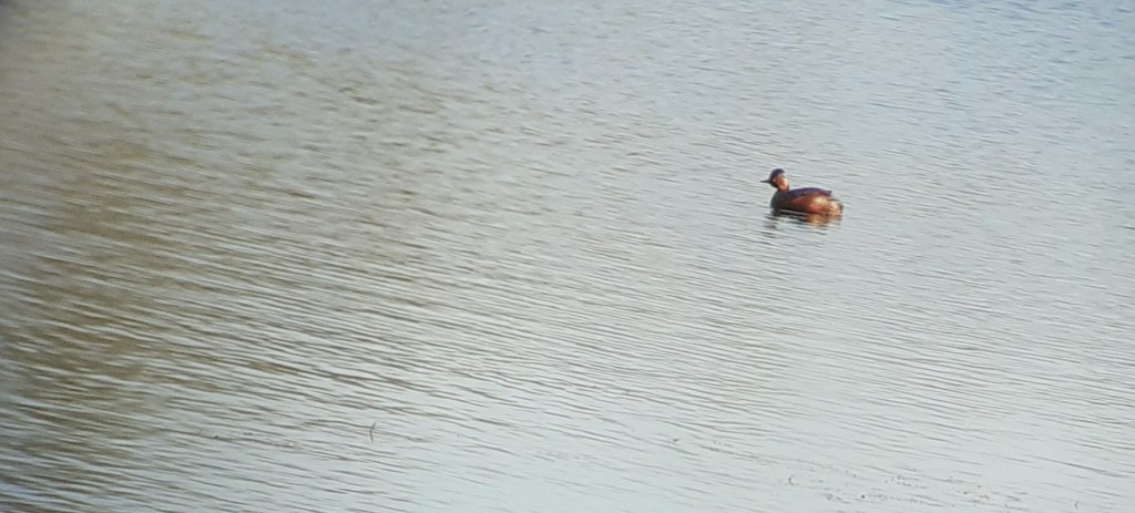 Volgende stop is het Compagnonsveld een stukje verderop, waar ik de week voor de big day een paartje Geoorde Fuut had. Onderweg hiernaartoe hoor ik mijn eerste Tuinfluiter voor dit jaar zingen, nabij de vogelkijkhut Bruustingerplas. Even verderop zit een Fluiter te zingen. Ik hoop ook op Wielewaal, maar deze hoor ik niet. De Geoorde Futen geven ook niet thuis, althans nog niet. Maar ik zal hier later op de dag nog even gaan kijken. Ondertussen blijf ik de omgeving afscannen. Op het Compagnonsveld had ik de week ervoor ook nog meerdere Grote Zilverreigers, maar vandaag zijn ze onvindbaar. Wel zie ik enkele Smienten en een paartje Scholekster.