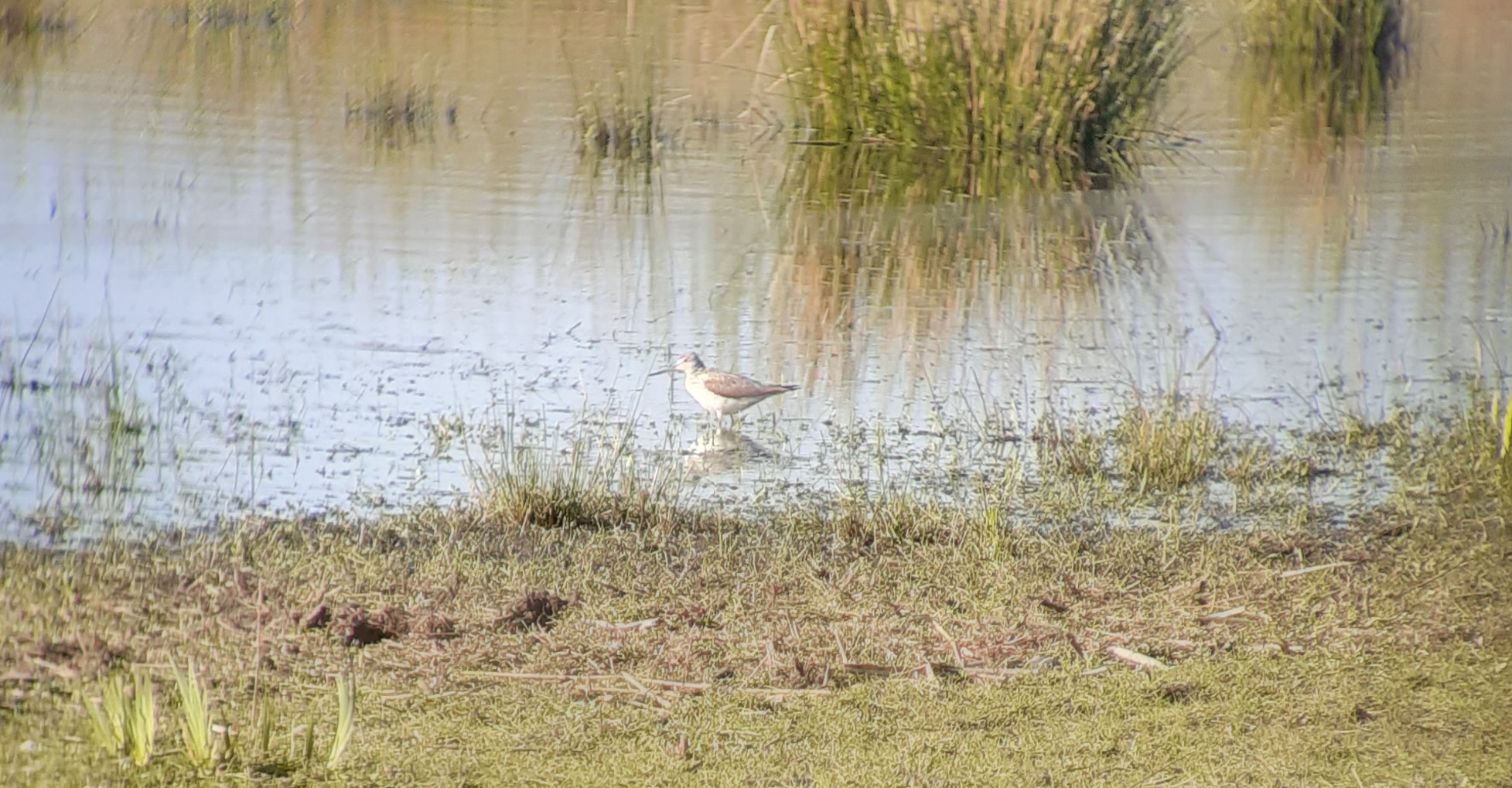 Het antwoord is absoluut ja, ook dit keer kan ik binnen de kortste keren een heel scala aan nieuwe dagsoorten bijschrijven. Ik zie binnen een minuut veel eenden ronddobberen maar ook enkele leuke steltlopers die mooi dichtbij druk bezig zijn met foerageren, waaronder meerdere Groenpootruiters en mijn eerste Bosruiters voor dit jaar. Ook Witgatje is net als vorige keer van de partij. Het plas/dras zou ook best weleens aantrekkingskracht kunnen hebben op Visarend, dus scan ik de lucht en bomen rondom het gebied af. Nergens een Visarend te bekennen, maar wel iets beters waar ik niet helemaal op had gerekend vandaag.