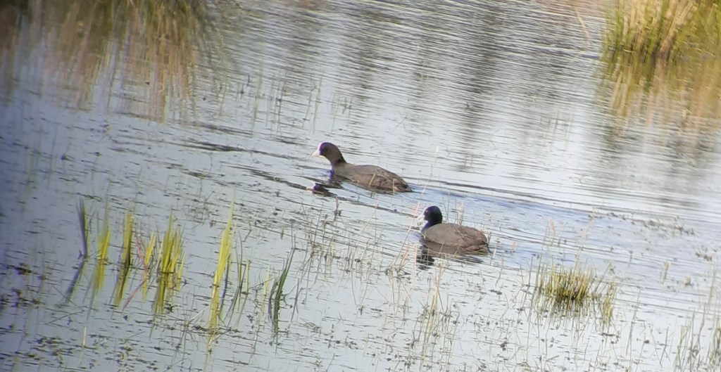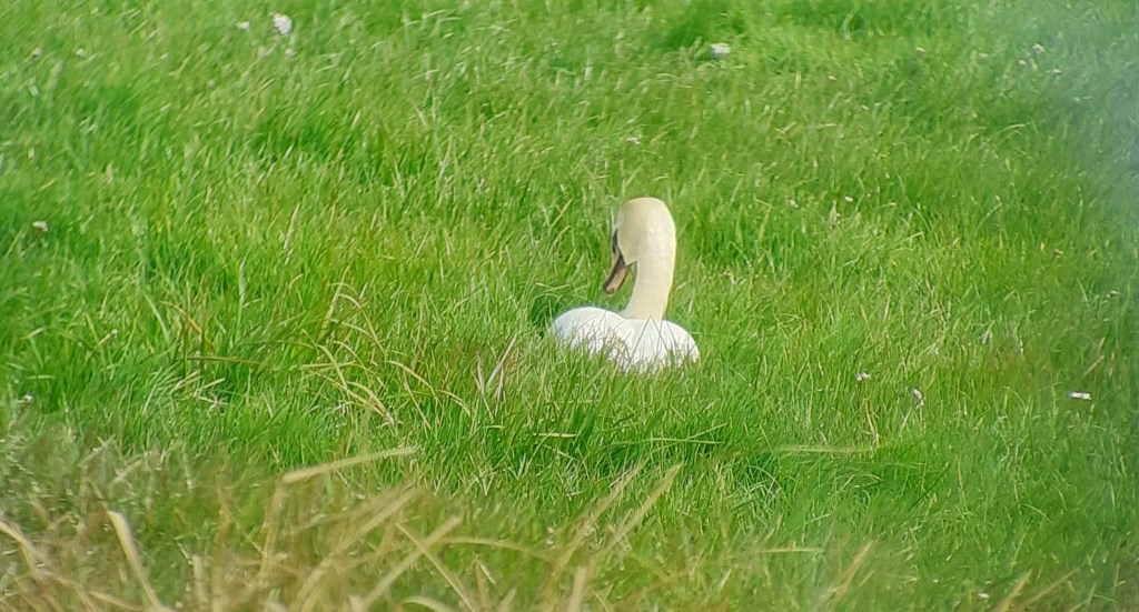 In het plas/dras gebied nabij het informatiecentrum gaat het weer de goede kant op. Hier zie ik al snel een Kraanvogel foerageren, een paartje Bergeenden (Soort #100) en Zomertaling. Nog net voor 12:00 lukt het me om over de 100 soorten te komen. Na een lunchpauze ga ik om 12:45 weer verder en hoor ik vanuit het riet een Rietzanger zingen, ook een vrij schaarse soort voor het Fochteloërveen. In het verleden heb ik hier ook weleens Snor horen zingen, maar vandaag niet. Ik kijk ondertussen even op waarneming.nl of er vandaag nog iets gemeld is binnen het gebied wat ik nog niet heb gezien/gehoord. Het blijkt dat er vanochtend twee Wilde Zwanen zijn gezien vlakbij waar ik sta. Ik fiets snel richting de plek en heb de zwanen al gauw in beeld. Toch weer een leuke bonus erbij. Even verderop dan ook eindelijk Paapje, een paartje zittend op paaltjes.