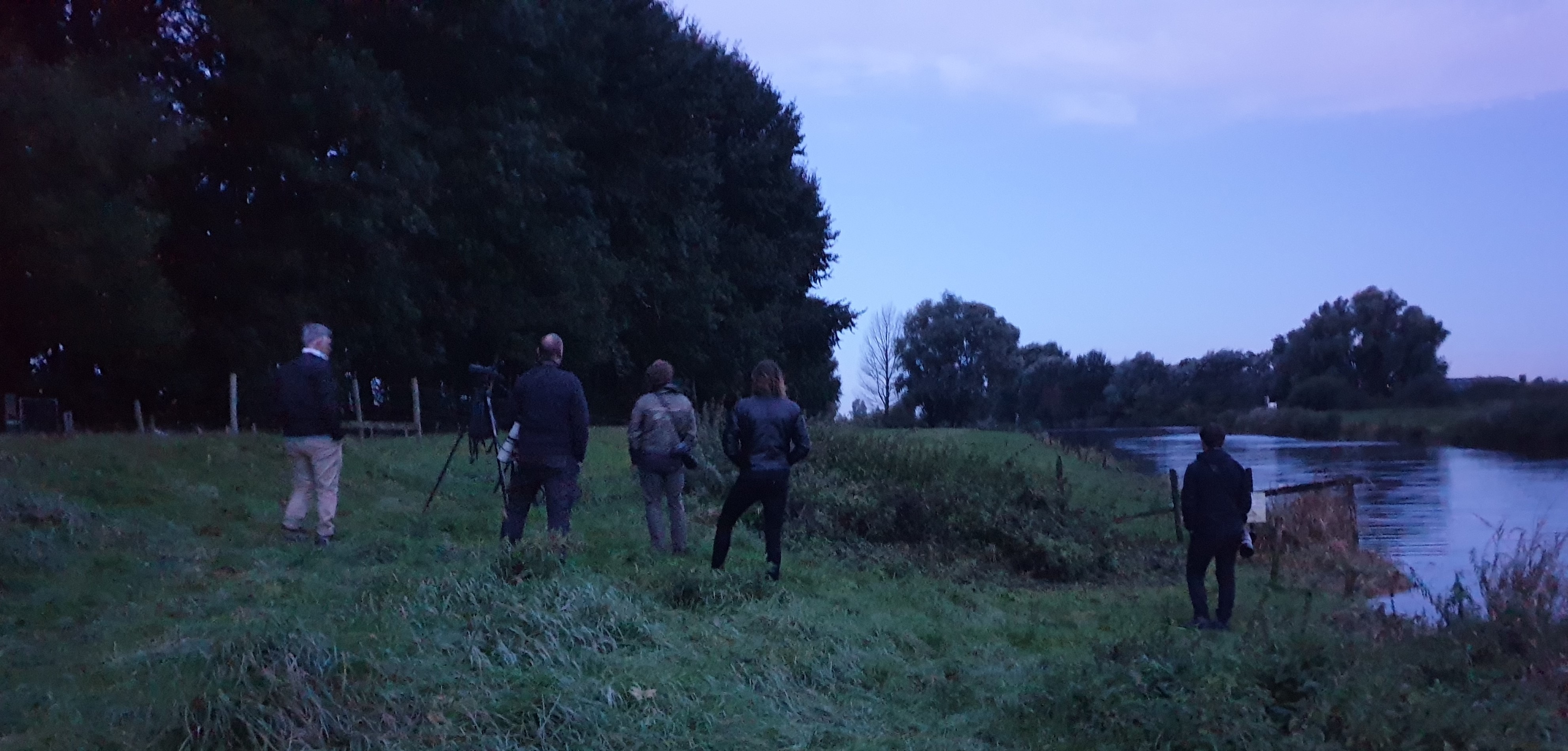 Nog in het donker arriveren we nabij het bosje waar de Schreeuwarend waarschijnlijk in zit. Er staat al een select groepje vogelaars te posten. Hopelijk heeft dit de arend niet doen schrikken. Het wachten is begonnen. Stukje lopen, benen strekken, kijken, turen, verkennen, kijken, turen. Dat gaat zo een tijdje door. Ondertussen is het langzaam licht aan het worden en ontwaken de eerste vogels. De eerste roofvogel van de dag laat ons even schrikken, maar het is geen Schreeuwarend, een Buizerd. Verderop een Grote Zilverreiger, IJsvogel roepend, Cetti’s Zanger zingend. Groene Specht in de verte lachend. Biddende Torenvalk, nog een Buizerd, nog een Buizerd en nog een Buizerd. Grote Gele Kwikstaart roepend overvliegend. Een groepje kraaien lijkt iets te pesten wat in het bosje zit verscholen.