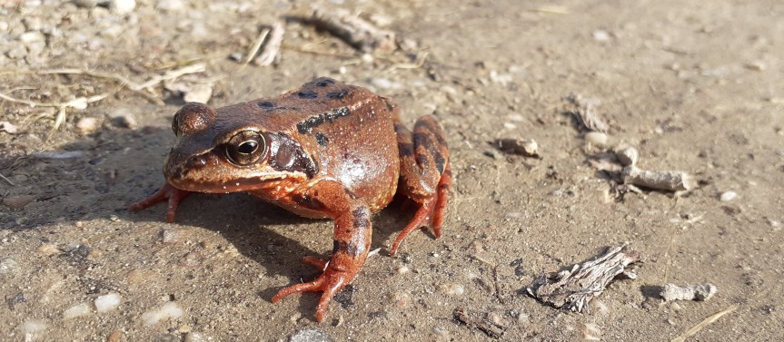 Enkele dagen na de eerste Bruine Kikker, was het de beurt voor Heikikker. Op 26 februari zag ik een eerste exemplaar. Vervolgens duurde het een paar weken (te koud), maar vanaf eind maart kwamen de Heikikkers pas echt goed op gang. In het Dwingelderveld zag ik met Siska op 20 maart mooie aantallen Heikikkers, waaronder ook veel blauwpaarse mannetjes in paarkleed.