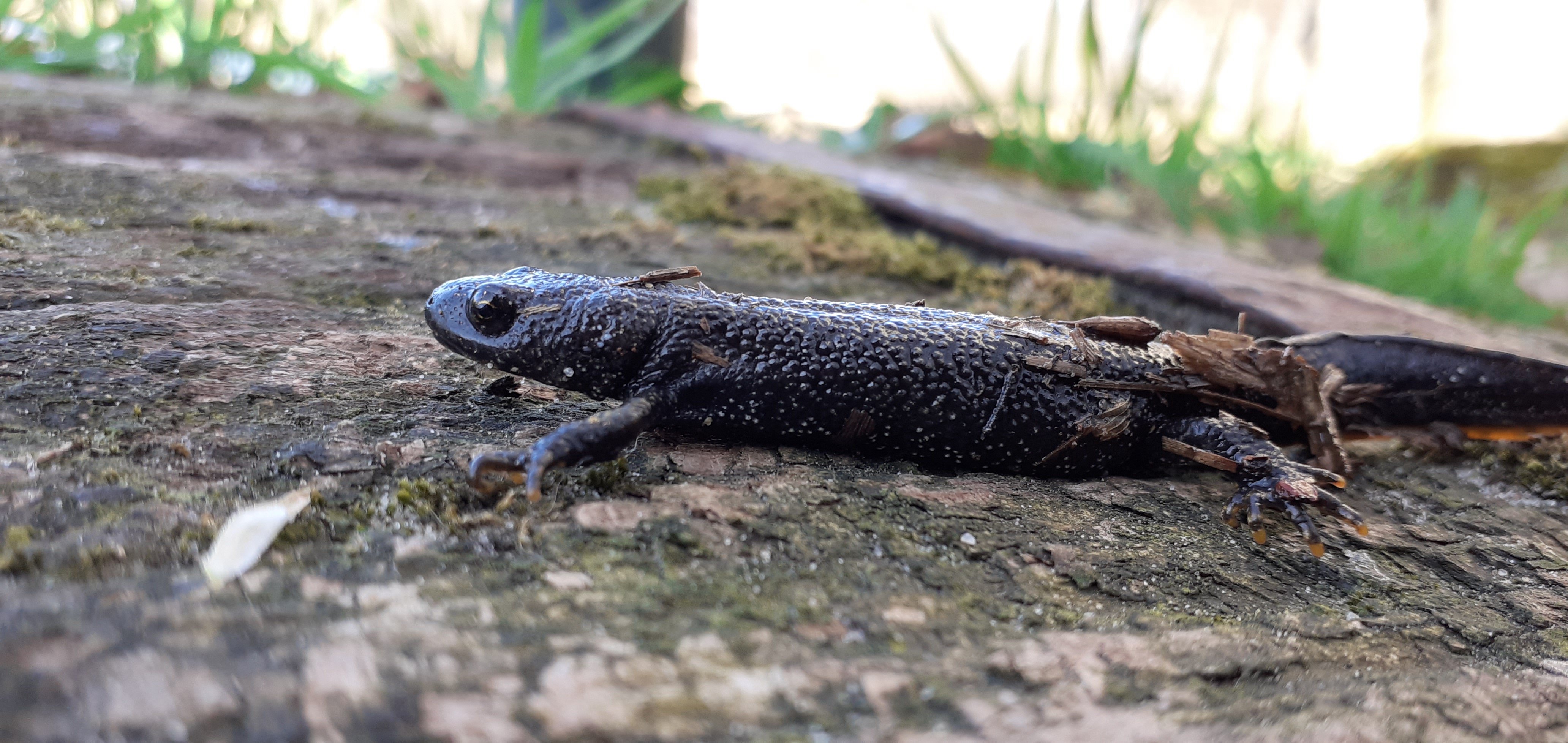 Zuid-Limburg was ook weer goed voor een handjevol waarnemingen van de vrij algemene Alpenwatersalamander. Deze soort zag ik enkel in landfase.