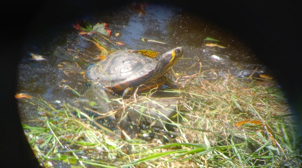 Ook een enkele exoot, de Geelbuikschildpad wist ik te vinden. In het Noorderplantsoen in Groningen zitten meerdere exemplaren. In Eelde ben ik nog op zoek gegaan naar Russische Rattenslangen in de omgeving, helaas tevergeefs. Vorig jaar wist ik wel een handvol van deze soort te vinden. Naar overige exoten, zoals andere sierschildpadden en Italiaanse Kamsalamander, heb ik niet actief gezocht.