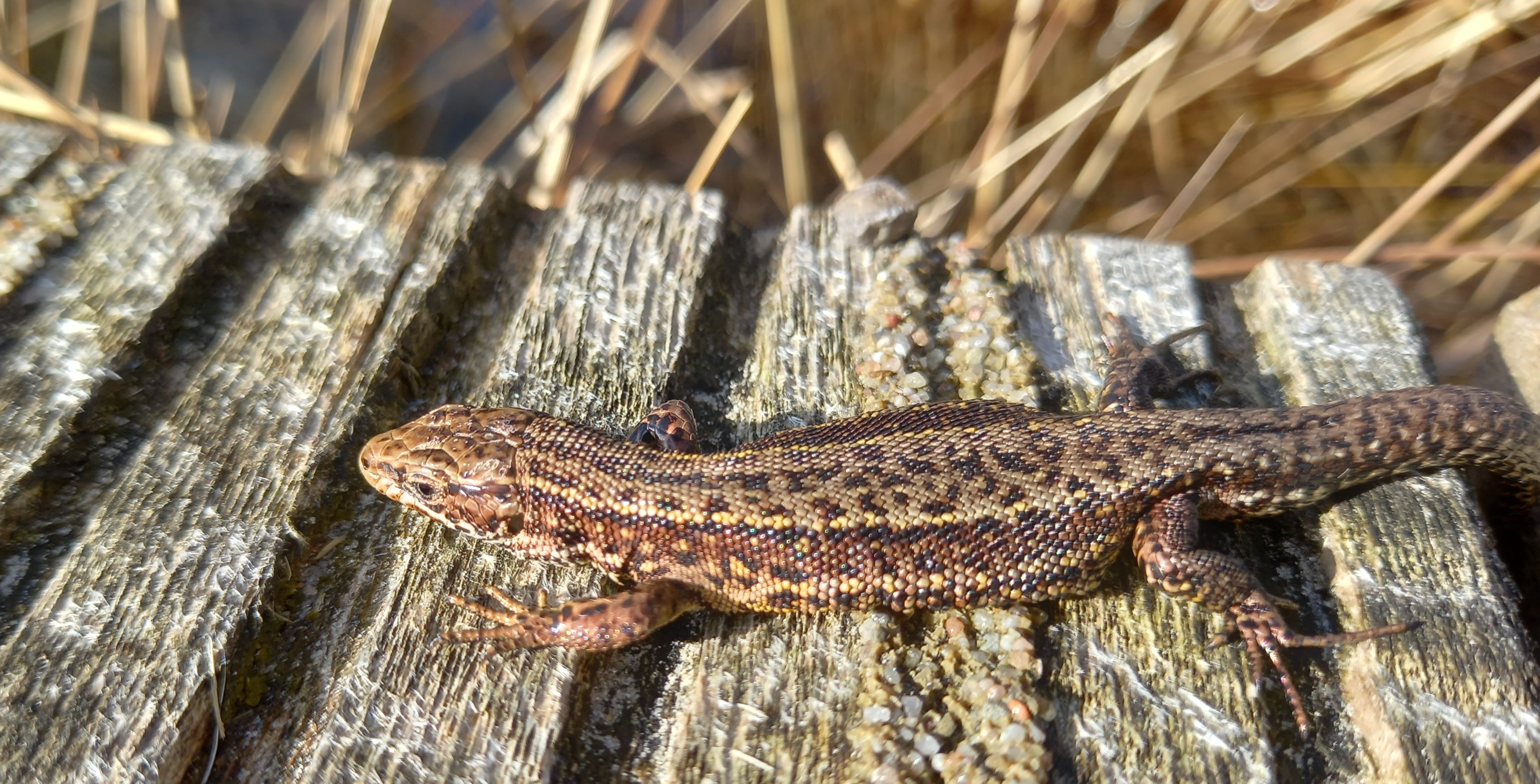 Op 2 maart weet ik samen met Siska twee exemplaren te vinden. Uiteraard ook mannetjes, want de mannetjes zijn altijd eerder actief in het jaar dan de vrouwtjes, om het sperma alvast te laten rijpen door warmte te verzamelen. De zon schijnt goed, maar er heerst nog altijd een frisse wind. Desondanks is er veel te zien. We zien ook een mooi aantal van 16 Levendbarende Hagedissen.