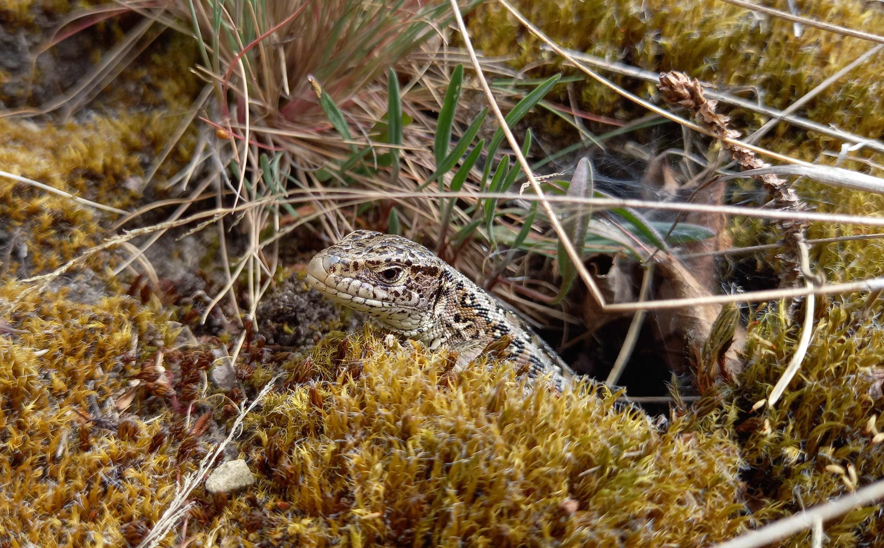 Het gebied herbergt een grote populatie Zandhagedissen, maar ook Hazelworm en de zeldzame Gladde Slang komen voor. In het verleden zag ik hier al vele Zandhagedissen, vooral langs de randen van het gebied. De open zandplekken en zandpaden zijn geliefd bij Zandhagedis, ook voor de ei-afzet. Het snel opwarmende zand is een belangrijke warmtebron.