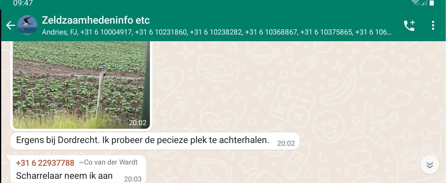 Op de avond van 24 mei 2022 wordt er een foto gedeeld in de zeldzaamheden app. Op de foto staat overduidelijk een Scharrelaar. Zou zijn gezien ergens in de buurt van de Dordrecht. Meer info ontbreekt nog. Men tracht de exacte locatie te achterhalen. Even voor 20:30 komt er meer informatie omtrent de plek. Al gauw zijn er enkele vogelaars op de plek, maar kunnen helaas niks vinden. Erg jammer. Vervolgens blijft het de rest van de avond stil. Zal wel doorgevlogen zijn, denk ik bij mezelf. Weer een Scharrelaar die aan mijn neus voorbij gaat. Maar wie weet, wordt de vogel toch de volgende ochtend teruggevonden. In de regio Dordrecht/Biesbosch wonen veel vogelaars. Er is nog hoop.