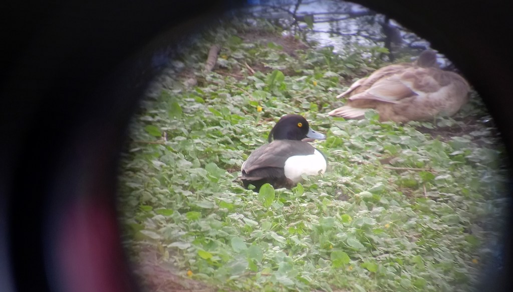 Dan op naar de Hoornse Plas. Als ik hier ben gearriveerd blijkt er een roeitoernooi gaande te zijn van de plaatselijke roeivereniging, overal mensen op het water. Nauwelijks een vogel te zien, zelfs geen Fuut. Wel hoor ik de enige Gekraagde Roodstaart van de dag zingen vanuit een bosje. Ook een zingende Koekoek is meer dan welkom. Op de nabijgelegen Piccardthofplas meer dan genoeg Futen.
