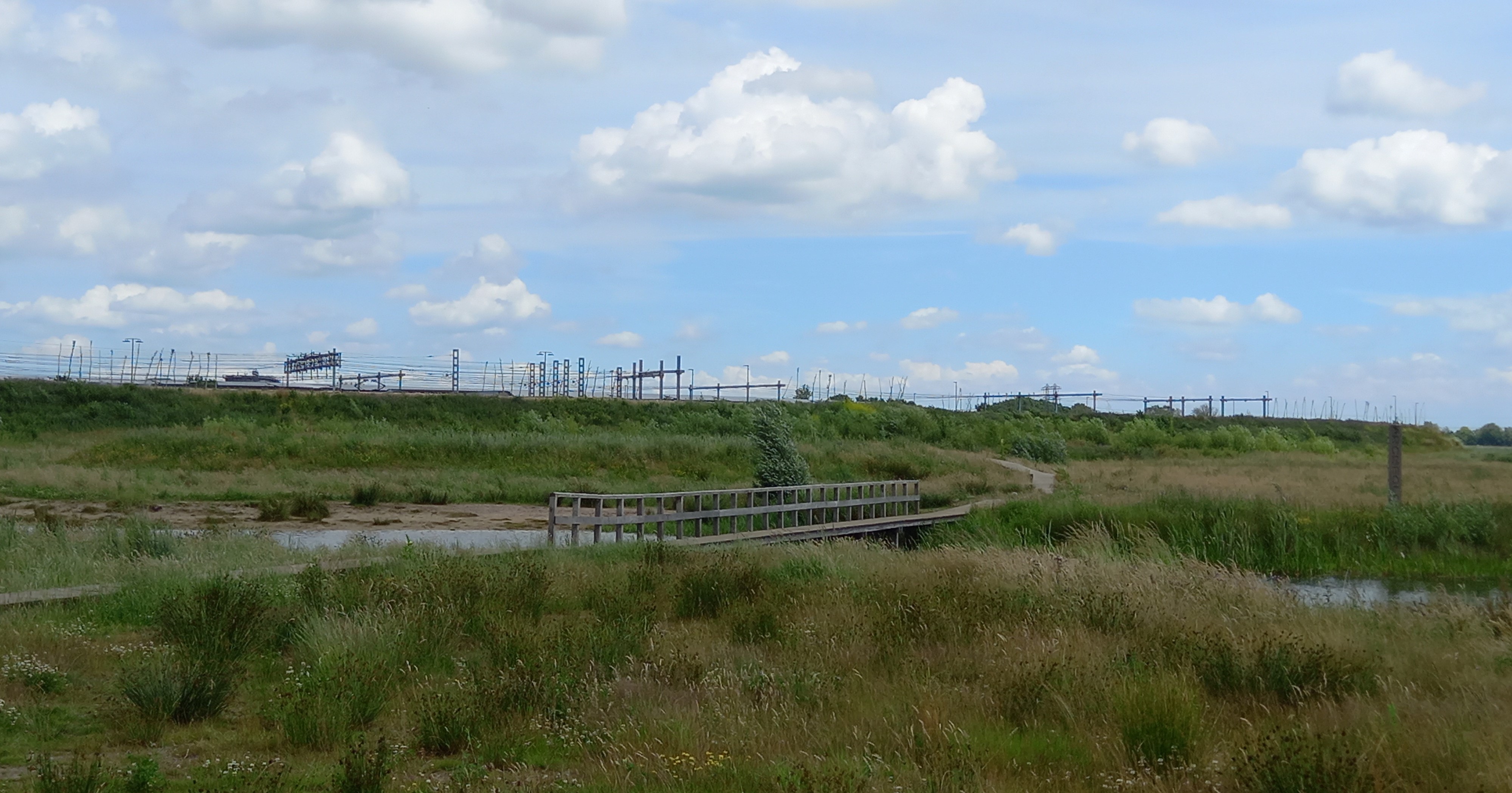 Het is sprokkelen geblazen, nog maar 2 gebieden waar een breed scala aan soorten te halen valt. Vloeivelden suikerunie en de Koningslaagte. Er zijn nog veel soorten mogelijk. Vanaf het Stadspark fiets ik richting noordwest, de vloeivelden. Een leuk en afwisselend gebied met plassen, bosjes en struweel. De spoorlijn Groningen-Leeuwarden doorkruist het gebied. Het is even zoeken naar de precieze ingang van het gebied. Een ingang nabij Hoogkerk waar ik eerder het gebied in ging, is nu geblokkeerd door Reuzenberenklauwen.