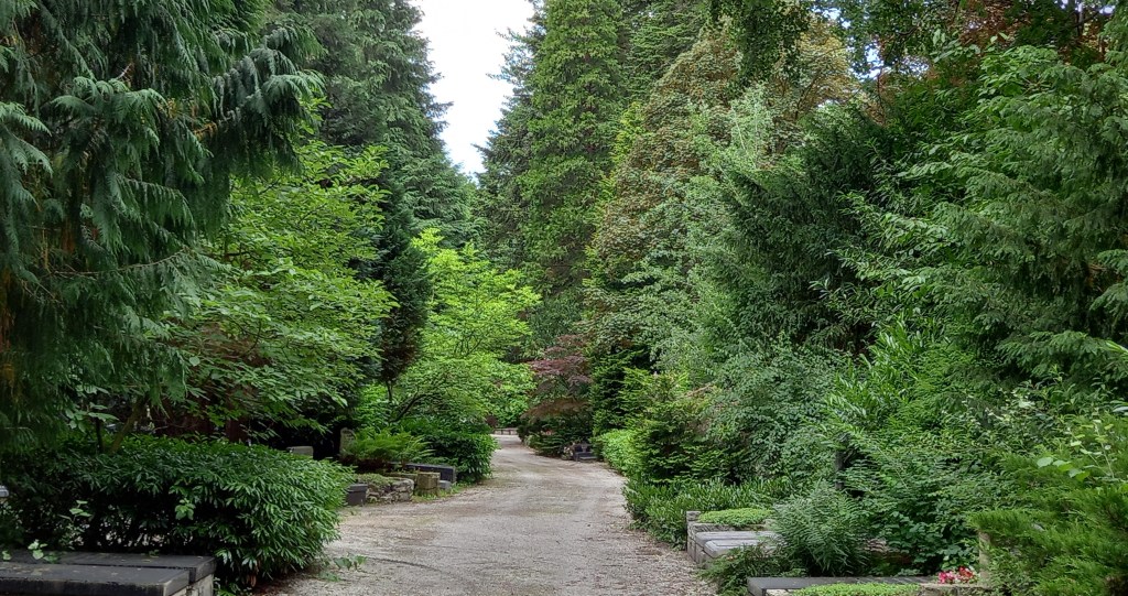 Dan fiets ik langzaam richting west/noordwest. De eerstvolgende stop is begraafplaats Esserveld. Een prachtige plek met een grote variatie aan bomen en struiken, een goed leefgebied voor veel vogels. Er staan oude loofbomen, maar ook grote coniferen bijvoorbeeld. In het vroege voorjaar had ik hier weleens een zingende Zwarte Mees en Goudhaan. Één van de weinige plekken in Groningen waar je deze vogelsoorten van naaldbossen kunt tegenkomen. Er zouden ook weleens Ransuilen kunnen zitten. Tot mijn verbazing hoor ik al snel een Zwarte Mees roepen en een Goudhaan zingen. Ik krijg er zelfs nog een bonus bij, een Grote Lijster, schaars in Groningen.