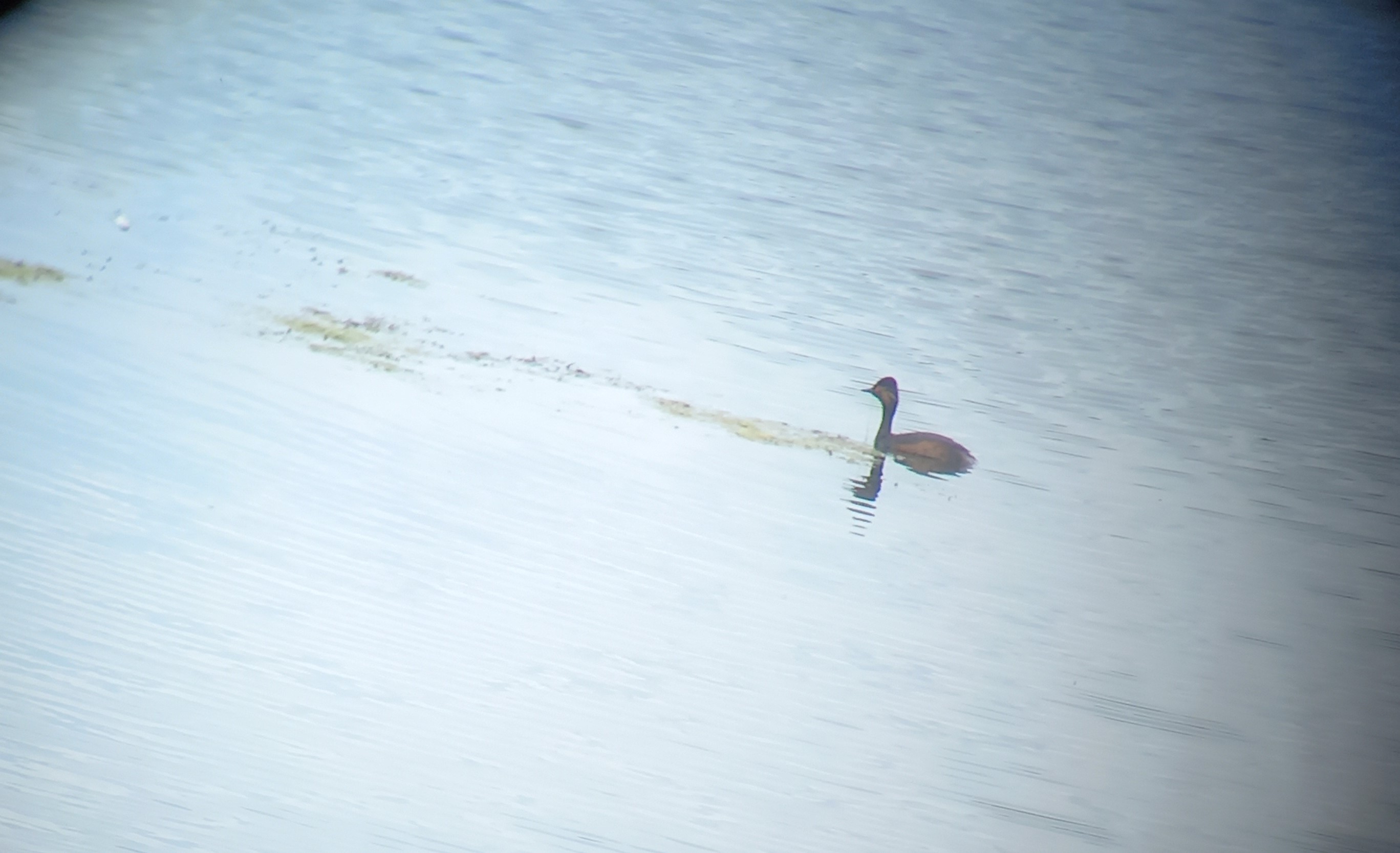 Ook hier een IJsvogel, juveniele Roodborsttapuiten, enkele Oeverzwaluwen in hun broedbiotoop, Geoorde Futen sierlijk op het water, een Spotvogel zingend, Waterral roepend vanuit een stukje riet en als meest onverwachte soort hier een Grote Karekiet, een zeer schaarse soort. Tot slot vliegt een mannetje Bruine Kiekendief nog even mooi langs. Fantastisch wat een aantrekkingskracht zo’n gebied heeft op vogels.