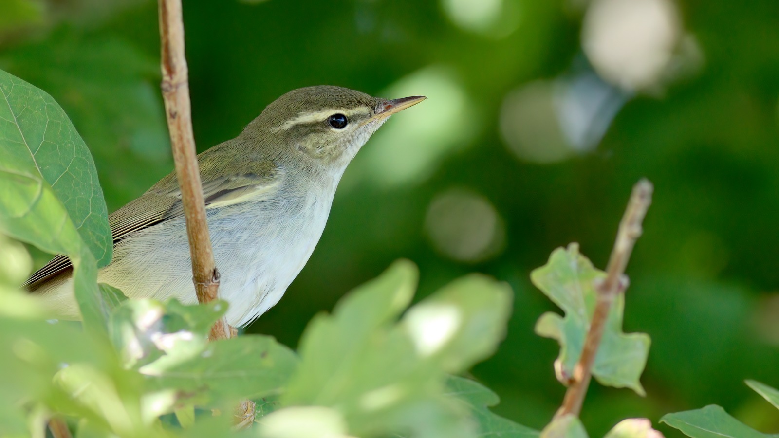 Het is voor ons beiden geen nieuwe soort, maar Folkert Jan zou dolgraag wat mooie beelden en foto’s willen maken van deze dwaalgast uit het verre noorden/oosten. Zelf zag ik de soort voor het laatst in september 2015 op Vlieland. Mijn eerste Noordse Boszanger zag ik in september 2013 op de Maasvlakte. Gezien, maar wel steeds een korte waarneming of waarbij de vogel vrij hoog in bomen zat. Kortom, een soort die wel weer even in de herhaling mag. Het leek erop dat deze Noordse Boszanger goed te doen was, zou zich mooi laten zien.