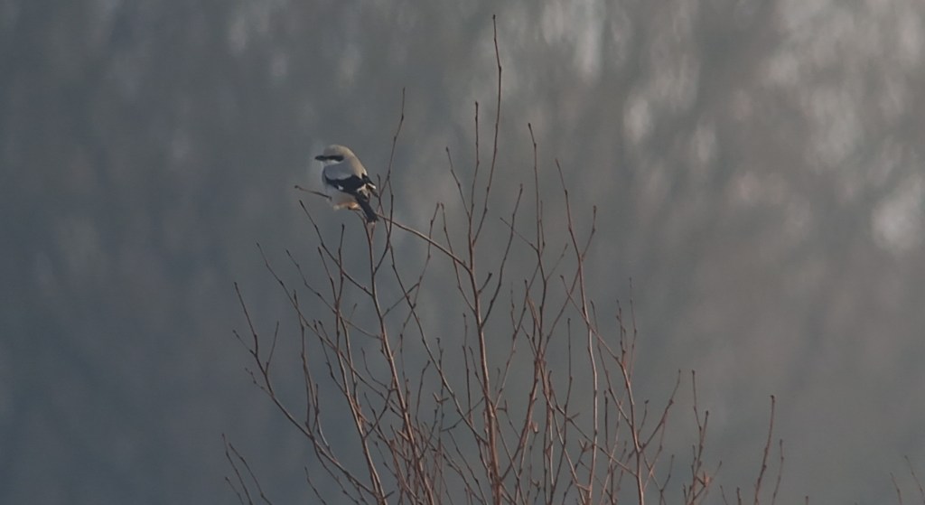 Voor het eerst aanwezig dit jaar tijdens de telling was de IJsvogel. Dat had ik enigszins verwacht, gezien het gering aantal plekken waar IJsvogels hun dagelijkse visje kunnen vangen. IJs dwingt IJsvogels op zoek te gaan naar de nog open stukjes water. Vaak wakken en sloten die worden open gehouden door o.a. eenden. In één van die wakken trof ik ook 2 Kuifeenden aan, die had ik ook nog niet eerder tijdens de PTT telling. Andere vrij schaarse soorten waren 2 trompetterende Kraanvogels, Raaf, Appelvink, Goudvink, Kleine Barmsijs, Groene Specht, Grote Lijster en Grote Gele Kwikstaart. Na weer een mooie telling in het prachtige Veenhuizen, de dag afgesloten in het Fochteloërveen. Hier liet een Klapekster zich mooi bekijken.