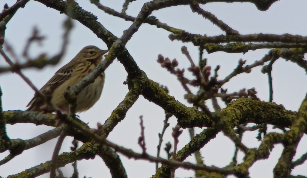 Mijn hoop was gevestigd op het vinden van een Draaihals en de eerste Koekoek en Zomertaling van het jaar. Daarnaast had ik als doel wat leuke opnames te maken van soorten. Ik heb mezelf dit jaar als doel gesteld om van 200 soorten opnames te maken. De teller stond inmiddels op 159, dus ik hoefde me wat dat betreft niet te vervelen (ik verveel me overigens nooit, overal is iets moois te zien of te ontdekken). Als ik het gebied in loop is het meteen genieten van zingende Boompiepers en Gekraagde Roodstaarten. Verderop hoog in de lucht een Veldleeuwerik. Ik sta een kwartier stil bij een bosje in de hoop Zwartkop en Gekraagde Roodstaart vast te leggen. Helaas valt dit niet mee, de vogels zitten hoog in de bomen en verplaatsen zich veel.
