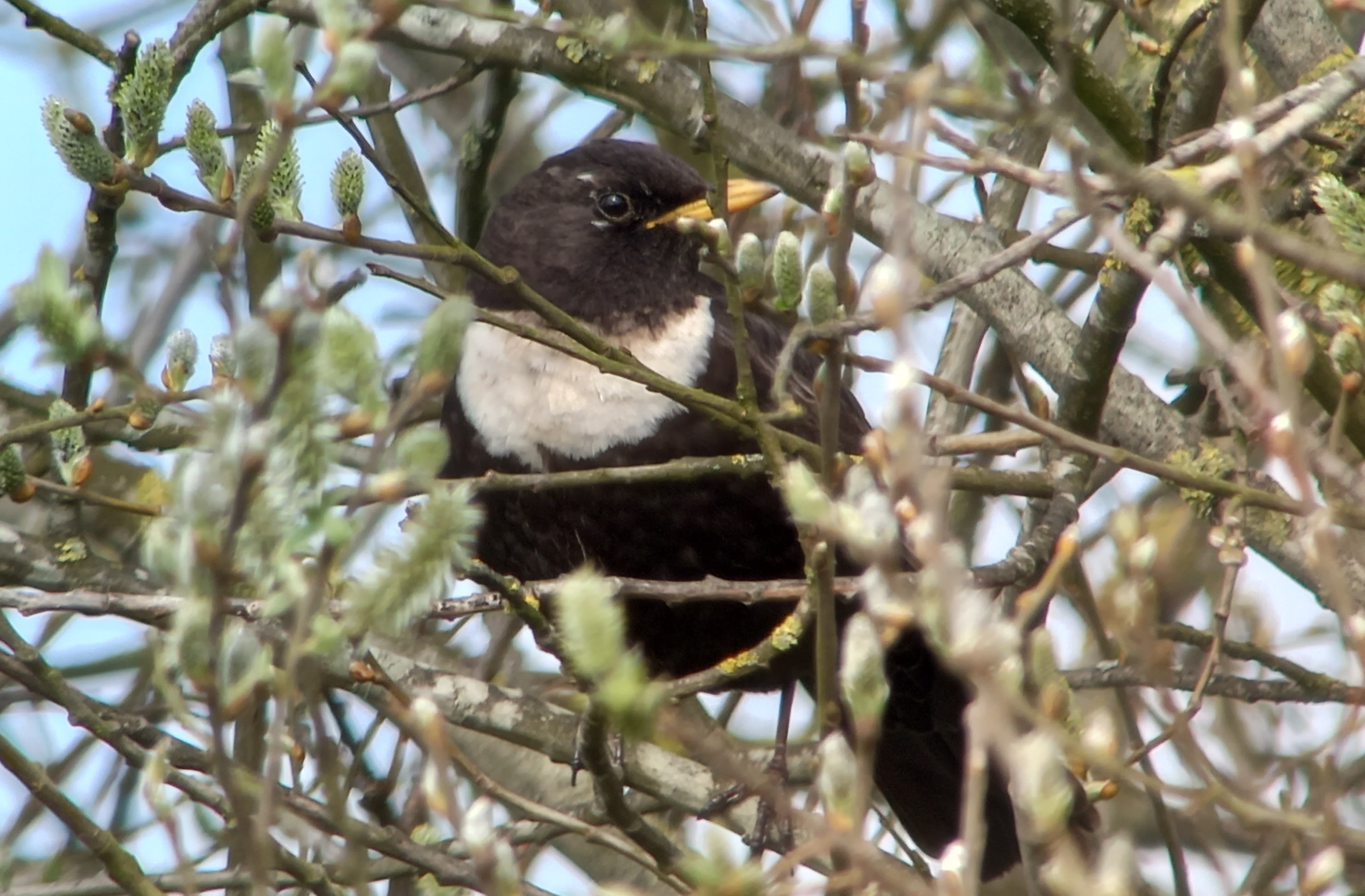 Ik loop langzaam verder als ik weer Beflijsters hoor roepen. Meteen sta ik stil en scan rustig de omgeving af. En dan zie ik opeens tot mijn verbazing een Beflijster prachtig in de bosjes zitten. Telescoop erop en dan is het groots genieten. Misschien wel mijn mooiste Beflijster waarneming ooit. Op een gegeven moment komt een Torenvalk aangevlogen en gaat de vogel dieper de bosjes in, maar laat zich nog steeds prachtig bekijken. De Torenvalk vliegt verder waarna de Beflijster weer tevoorschijn komt. Half slapend met de ogen half dicht zit de vogel mooi in het zonnetje. Een halve meter ernaast nog een Beflijster, deze besluit in de bosjes te blijven. Ik kan leuke opnames maken van deze prachtige soort, die in april Nederland aandoet als doortrekker.