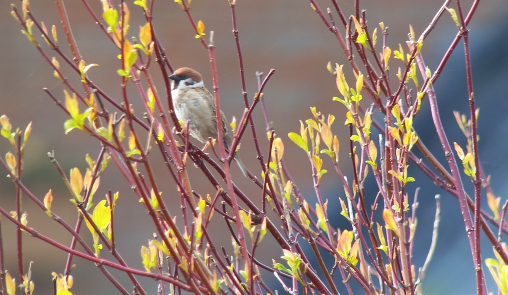 Terwijl een Roerdomp hoempt vanuit het riet en een Braamsluiper zijn aanwezig verraad door zijn luide zang, loop ik richting een plas. Op deze plas zitten veel vogels, maar wel ver weg. Toch lukt het me om een mannetje Zomertaling te vinden. Verder leuk zijn enkele Visdiefjes, een Blauwborst, Sprinkhaanzanger en een mannetje Havik overvliegend. Nog veel leuker is een Nachtegaal die in de verte luidkeels zit te zingen vanuit een verwilderde tuin met veel struweel. Ik besluit er naartoe te lopen in de hoop de Nachtegaal te kunnen zien. Maar na een dik halfuur wachten en zoeken is het wel duidelijk dat deze wens te hoog gegrepen is. De vogel zit zeer dichtbij, zingt bijna continu, maar is niet te zien. Wel weet ik de fraaie zang vast te leggen. Altijd weer leuk de eerste Nachtegaal van het jaar. Verderop zie ik nog een handjevol Ringmussen tussen de vele Huismussen.