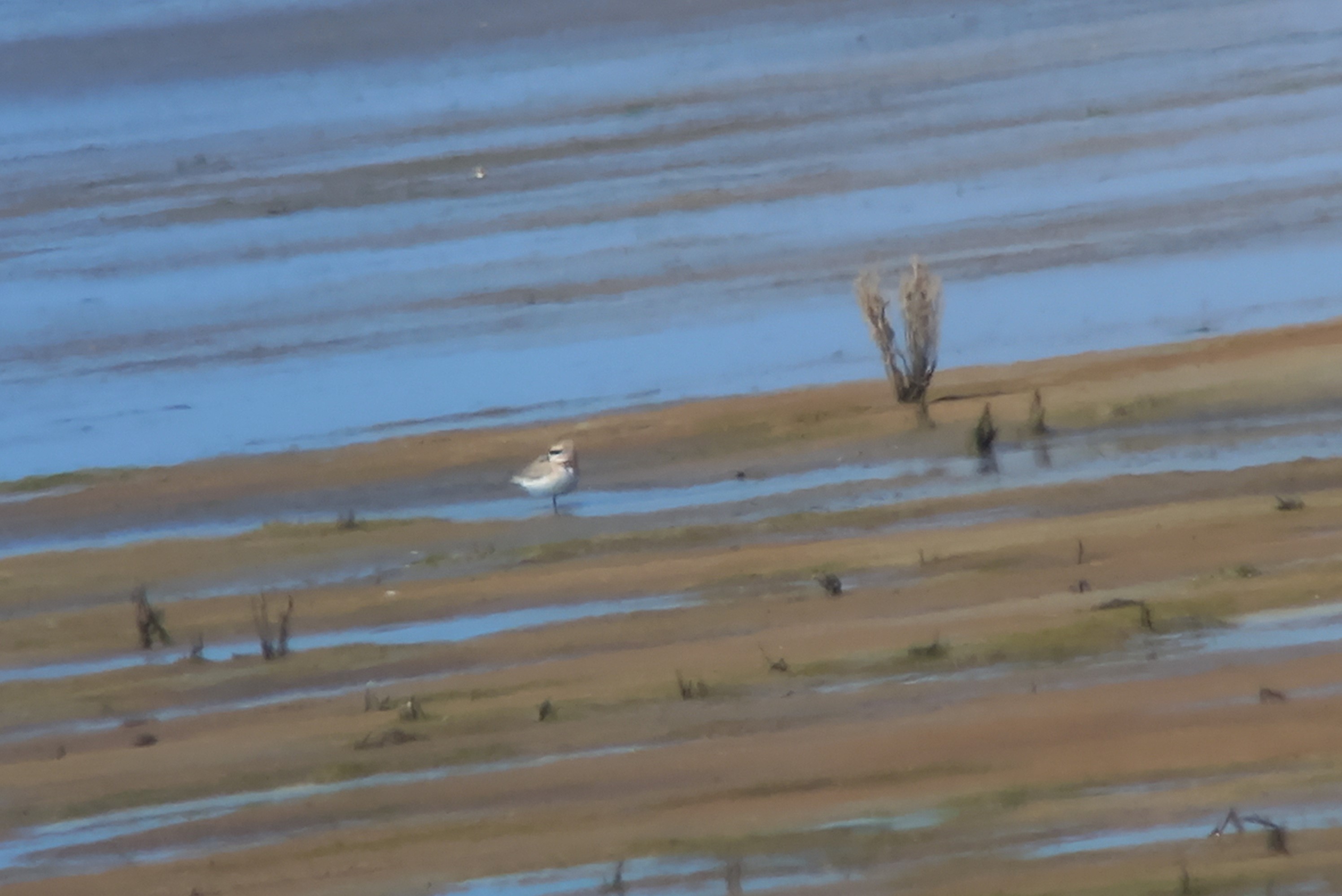 En zo zijn we al gauw onderweg naar dit schitterende gebied. Inmiddels is het bericht doorgekomen dat er ook een breedbekstrandloper is gevonden op het wad bij de Bantpolder. In de Bantpolder zelf ook nog eens morinelplevieren en een roodhalsgans. Ja, er valt weer veel vreugde te halen in het Lauwersmeer. En het is zondag, en het is prachtig weer en dus zijn er vele vogelaars in het gebied aanwezig. Terwijl we onderweg zijn vervliegt de woestijnplevier regelmatig, maar kan steeds worden teruggevonden. Breedbekstrandloper zou mooi dichtbij zitten, spannend!