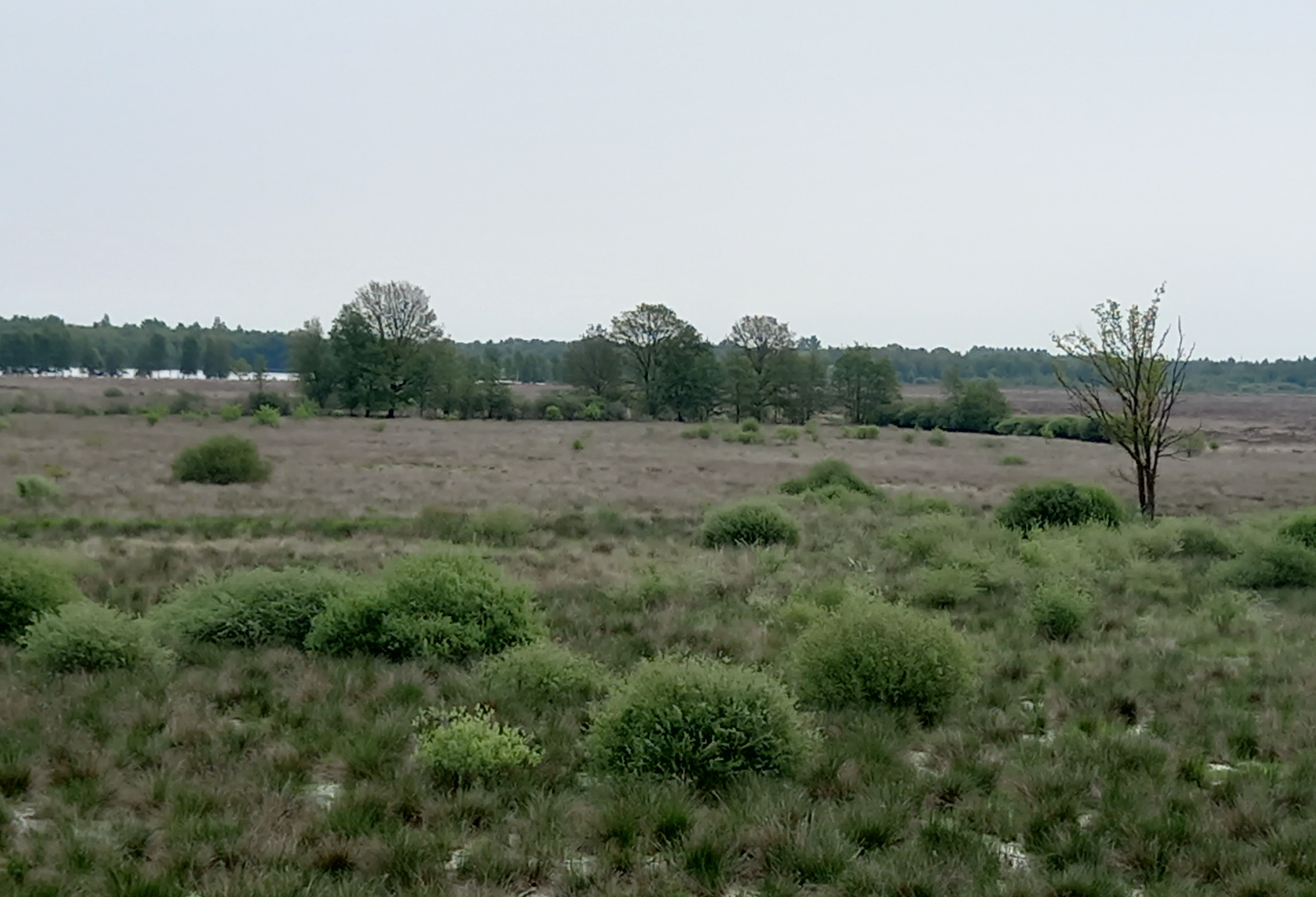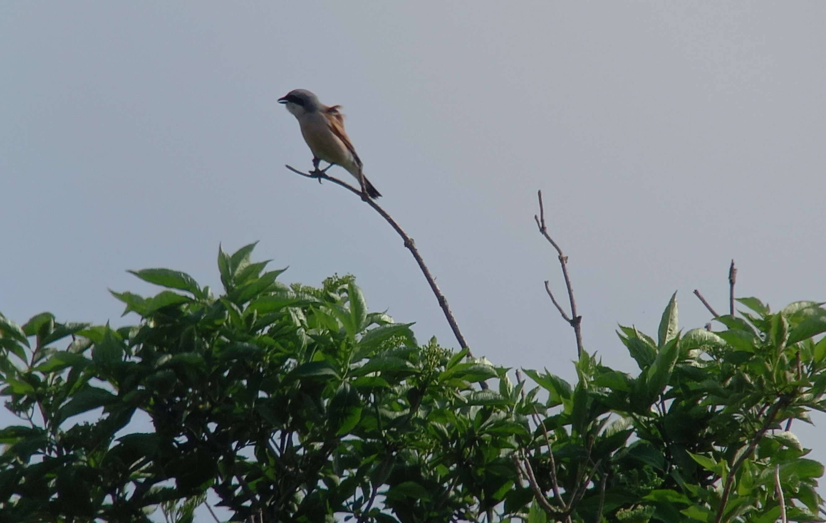 Dan is het tijd voor de volgende stop, de bufferzone. Met de verrekijker scan ik meteen de vele bosjes af hier. Een mannetje grauwe klauwier zit zoals altijd op deze plek, mooi bovenin een struik. Het vrouwtje is nergens te bekennen, waarschijnlijk is ze bezig met het nest. Ook tref ik Folkert Jan, Jannie en Olivia, die op het punt staan een wandeling te maken door het veen. We spreken af mocht iemand van ons een slangenarend zien, dat we het aan elkaar doorgeven. Deze jaarlijks terugkerende zeldzaamheid is vandaag al enkele keren gemeld op waarneming.nl. Goed omhoog blijven kijken dus.