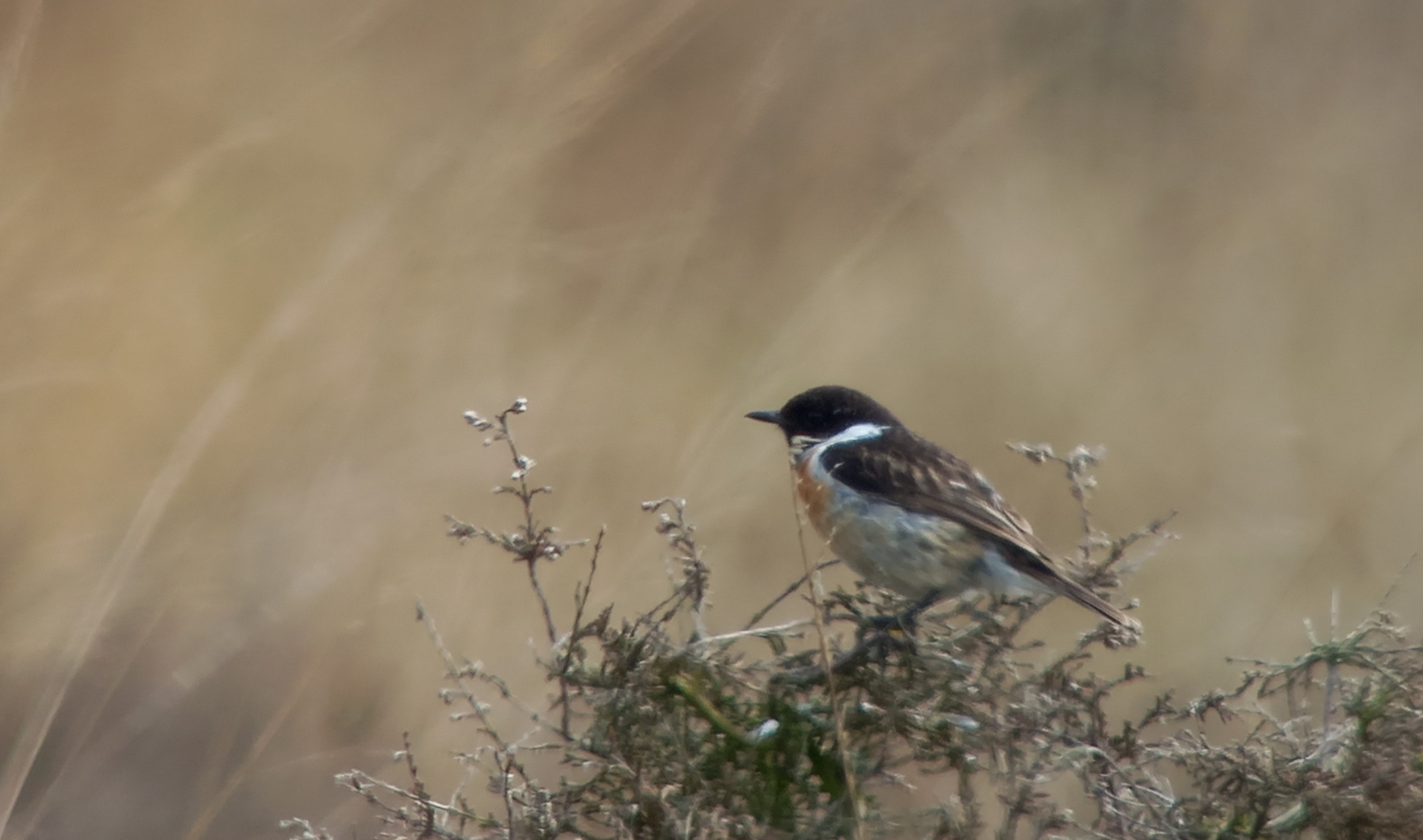Via een boerderij met een rommelig erf fiets ik weer richting Bankenbos. Dit rommelige erf heeft potentie voor een soort als zwarte roodstaart. En ja hoor, meteen hoor ik een vogel roepen, alarmerend. Dan zie ik al snel het vrouwtje verschijnen op een paaltje, mooi dichtbij. Even later zit ze op een machine. Het mannetje zingt verderop. Het vrouwtje zie ik weer even later een schuur invliegen, druk alarmerend en met voedsel in de weer. Die heeft dus een nestje met jongen daarbinnen. Vanaf de naastgelegen akkers graspieper en gele kwikstaart. Fijn om te constateren dat er toch nog wat weidevogels rondom Veenhuizen zitten. Groene specht, die ik ook vaak in Veenhuizen heb, schittert door afwezigheid. Maar deze fraaie soort kan overal nog.