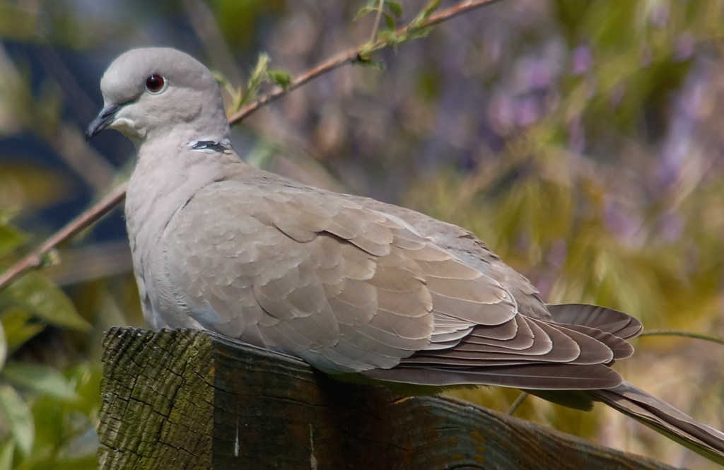 Nu is het tijd om het dorpje Fochteloo te vereren met een bezoek. Het is vrijwel de enige plek bij het Fochteloërveen waar ekster en Turkse tortel te zien zijn. Ook kwam ik erachter dat hier een goeie plek is met ringmussen. Ik fiets nog geen minuut door het dorp of ik hoor een Turkse tortel zingen. Ik speur vervolgens alle daken en tuinen af, maar kan de vogel niet vinden. Toch maar even een rondje lopen door het dorp. Terwijl ik van de fiets afstap, zie ik een eksterpaar foerageren in een tuin. Helaas zijn de vogels zeer schuw en vliegen op. Ze vliegen een andere tuin in, uit het zicht. Dat is dan toch wel jammer. Dan maar weer focussen op die Turkse tortel. En dan zie ik wel heel mooi tortelduifjes zitten bij een huis waar de soort vorig jaar ook zat.