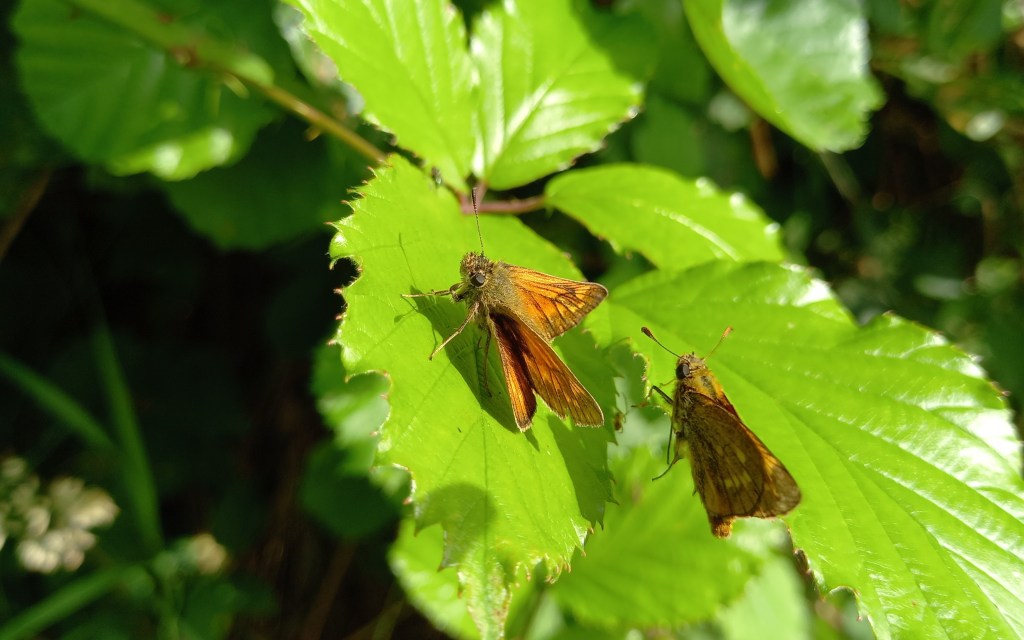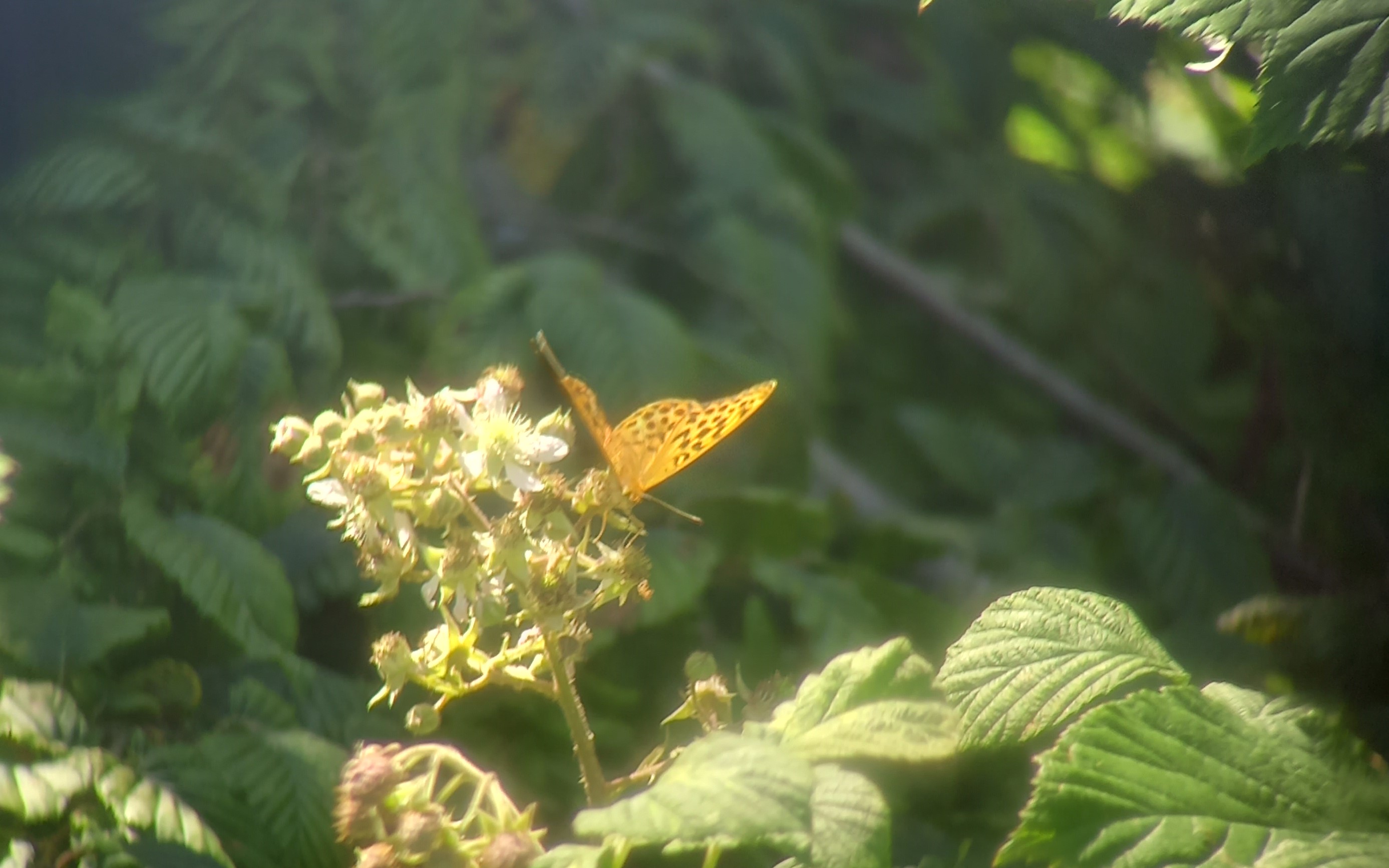 ’s Ochtends 27 juni kwam ik nog meer exemplaren tegen, vooral in bosranden met bramen, waar de vlinders nectar komen drinken. Ook leuk was alweer mijn 6e grote vos voor dit jaar. De grote vos zat lekker op een boom op te warmen in de vroege ochtendzon. Mooi om te zien hoe goed deze soort het doet in de Achterhoek. Deze grote oranje vlinder wordt op steeds meer locaties waargenomen, ook richting het noorden. Soorten als groot dikkopje en bruin zandoogje vlogen inmiddels ook in grote getale. Bruin zandoogjes kwam ik op enkele extensief beheerde graslandjes soms met enkele honderden tegen. Honderden vlinders bij elkaar, zeldzaam vandaag de dag. Zeker dit jaar waarin we een toch wel matig voorjaar hadden qua dagvlinders.