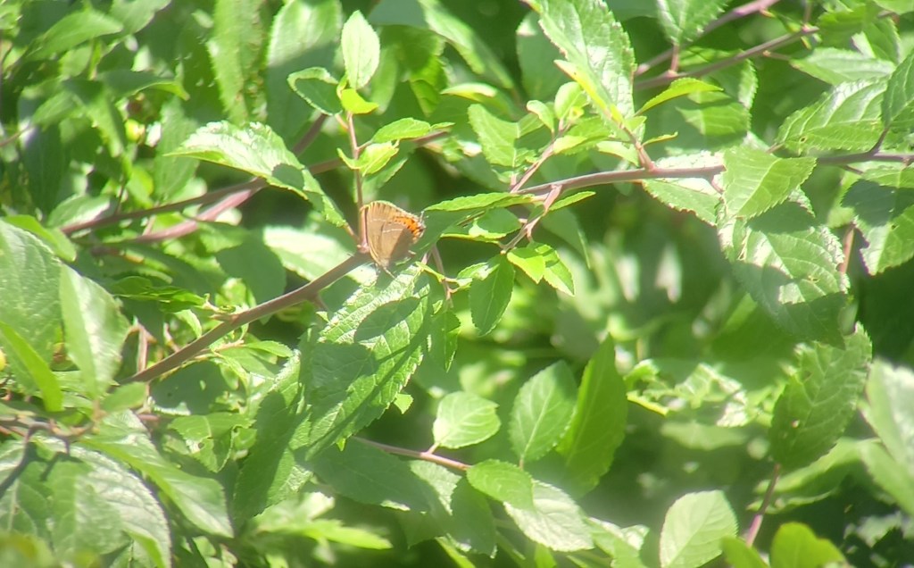 Tussen het veldwerk door, ging ik op zaterdag 24 juni met Siska een dagje naar Zuid-Limburg. Een dagje Zuid-Limburg in juni staat garant voor leuke soorten. Enkele soorten die je in Nederland uitsluitend in Zuid-Limburg kunt zien, vlogen nu rond. Zo werden er weer meerdere dambordjes gezien en vloog de braamparelmoervlinder weer. Ook de zeldzame kleine weerschijnvlinder was onlangs gesignaleerd. Nog meer bijzonder was de ontdekking van meerdere pruimenpages bij Vijlen. Dit kleine vlindertje, dat net andere kleine pages vaak goed verstopt zit in bomen en struiken, werd voor het eerst in 33 jaar weer waargenomen in Nederland. Of zich hier een populatie zal vestigen, is nog maar de vraag. Maar het is niet ondenkbaar.