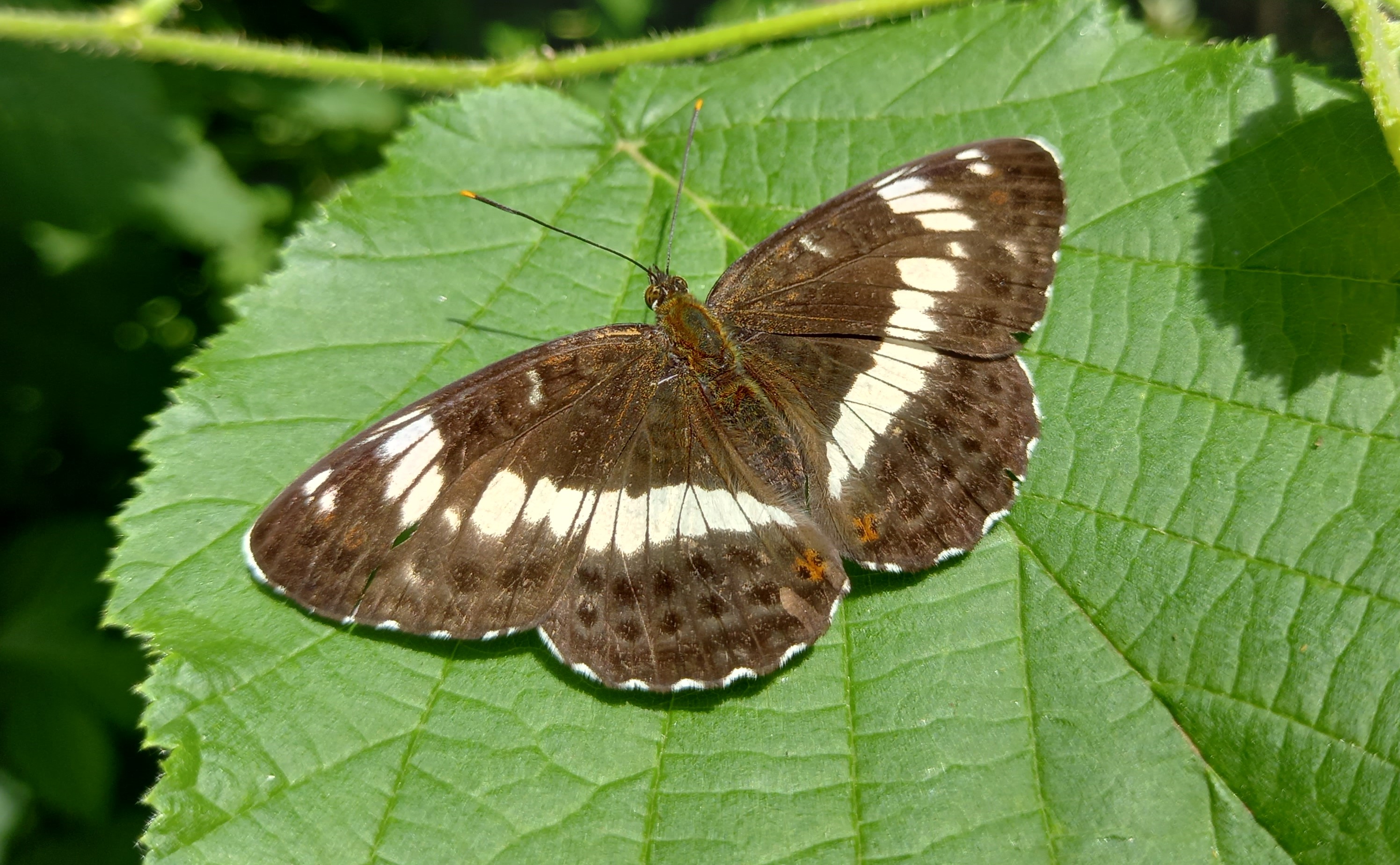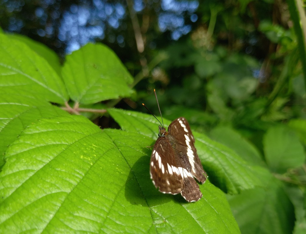 Op maandagochtend 26 juni gaf ik na het afronden van mijn BMP bezoek, een excursie op natuurbegraafplaats Schapenmeer. Een prachtige plek met een mooie diversiteit aan vogels. Tijdens deze excursie kwam een kleine ijsvogelvlinder op ons pad. Het zou de eerste zijn van vele exemplaren. Deze zeldzame en opvallende bosvlinder, die voor de voortplanting afhankelijk is van wilde kamperfoelie, doet het goed in het oosten van het land, waaronder de Achterhoek en Twente. In de jaren 90 deed de soort het erg slecht, maar na 2000 is de soort gestaag toegenomen dankzij gericht natuurbeheer- en herstel. Ondanks de naam zijn het vrij grote vlinders.