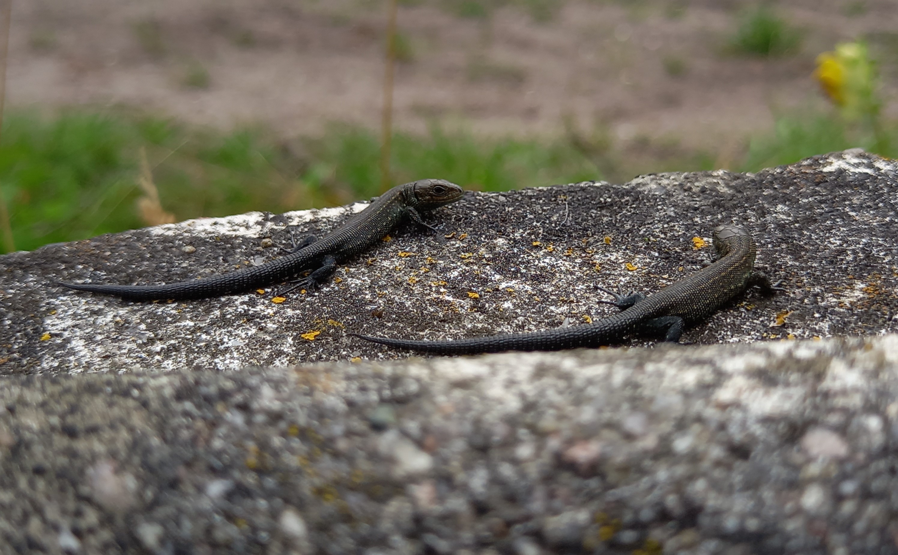 Ik zag ook dit jaar op veel verschillende plekken in en nabij Beetsterzwaag levendbarende hagedissen, waaronder op voor mij nieuwe locaties. De beste plekken zijn de wat grotere heideterreinen en vennen in de bossen, brede bospaden met open bosranden en de uitgestrekte Liphústerheide. Bij enkele bosvennen en op de Liphústerheide zag ik onlangs veel juveniele, pasgeboren diertjes. Op de Liphústerheide zag ik ze op en langs het fietspad dat het heidegebied doorkruist. Het doet me goed om te merken dat bepaalde soorten het na al die jaren nog redelijk vergaat, al verschilt het per plek. Dit geldt ook voor andere kwetsbare soorten in de omgeving, zoals hazelworm, heideblauwtje, koraaljuffer en gevlekte witsnuitlibel.
