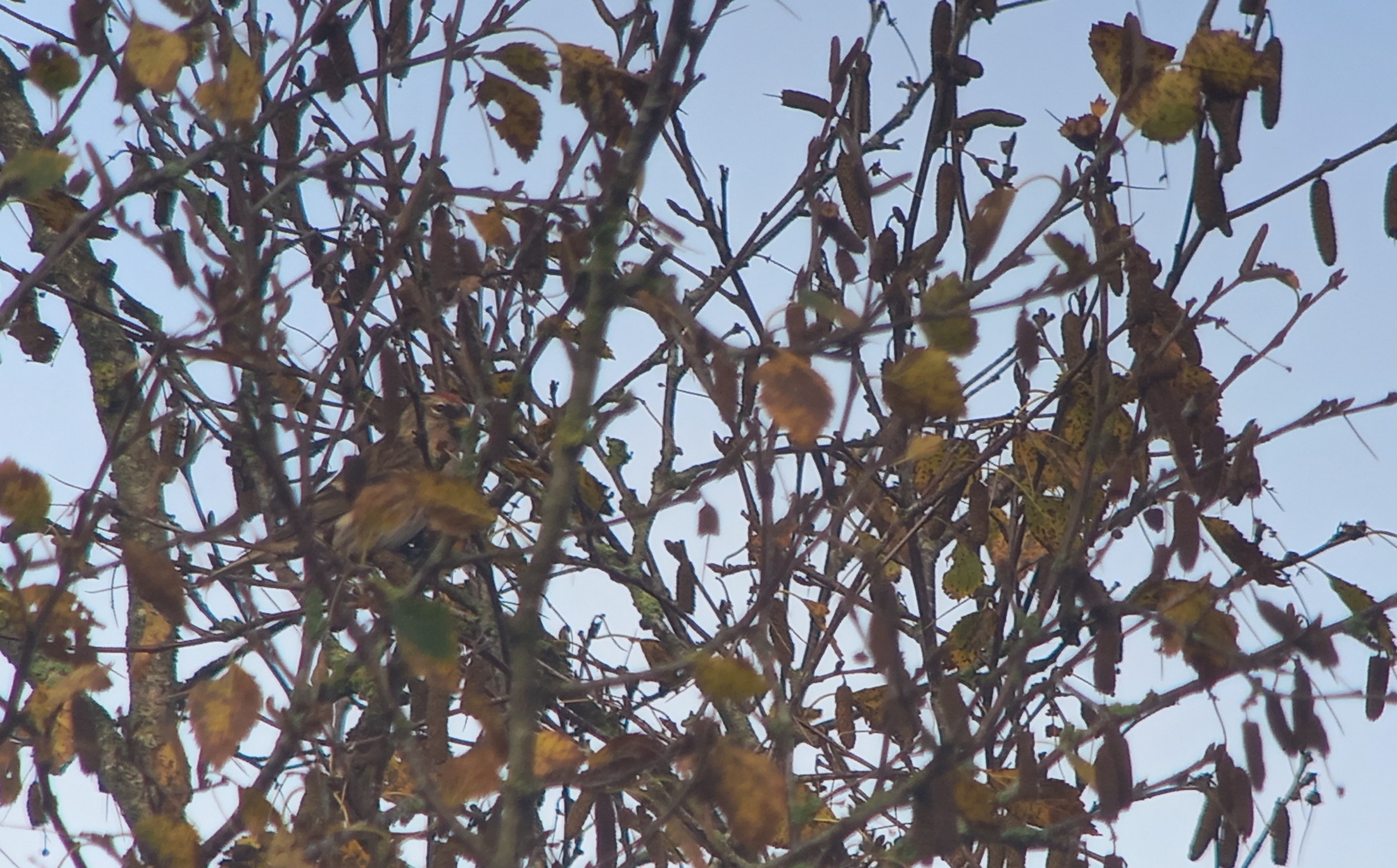 Een stukje verderop, in het meest zuidwestelijke stukje Beetsterzwaag, valt pas op hoeveel vogels er zitten. Overal mooie groepjes koolmees, pimpelmees, goudhaan, merel en koperwiek. Vanuit iedere tuin meerdere tikkende roodborsten en vele vinken met daartussen een enkele keep. Ook opvallend veel heggenmussen en tientallen gaaien die zich tegoed doen aan beukennootjes, kastanjes en eikels. Dan hoor ik opeens een kenmerkend ‘tsie-wiet’ vanuit een bomenlaan. Hoor ik dat nou goed? even de oren goed spitsen. Ik hoor het nogmaals en het blijkt zowaar een bladkoning te zijn. Leuk zo in het binnenland, nog maar mijn 2e vogel voor dit najaar. En zo overvalt deze mooie vogelochtend mij met het gevoel alsof ik op Vlieland zit. Zulke hoge aantallen vogels, een bladkoning, het voelt spannend. Er zou ook iets nog zeldzamers kunnen zitten.