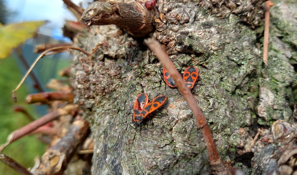 Er komen ongeveer 640 soorten wantsen voor in Nederland en vele hebben een prachtige tekening, kleine kruipende kunstwerkjes dat het zijn. De Vuurwants is een vrij algemene verschijning en vaak te vinden op lindes, waarop ze zich tegoed doen aan sappen. In Noord-Nederland is de soort minder algemeen, omdat het een warmteminnende soort is. Maar ook in het noorden wordt de Vuurwants steeds vaker gesignaleerd. Deze Vuurwantsen zaten lekker met elkaar in het zonnetje, hoe gezellig. Zie hieronder voor nog een kort filmpje.