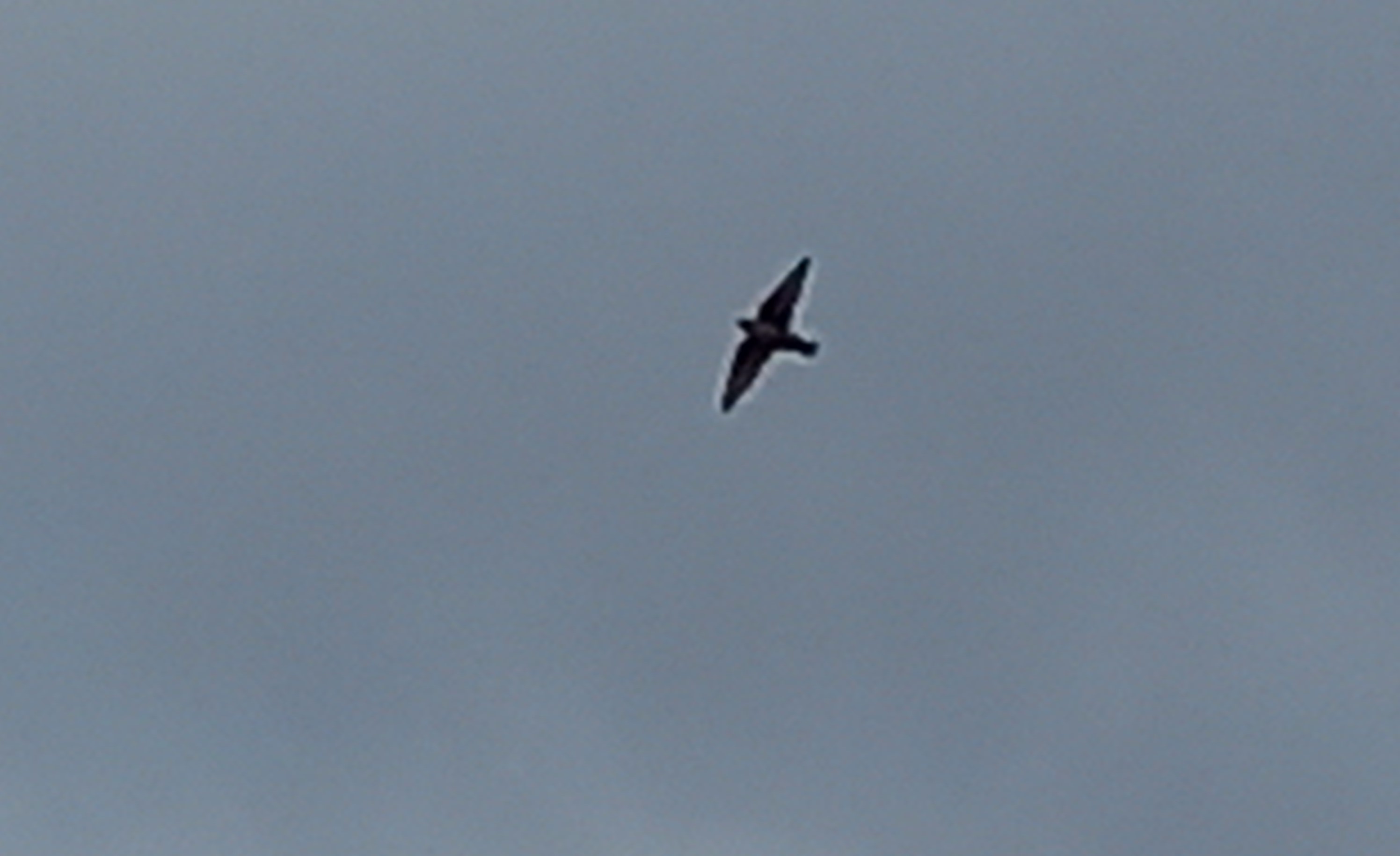 Als we de dijk oprijden bij Doornenburg zien we al snel een rij auto’s en mensen staan. Auto parkeren en gauw eruit. De zon heeft inmiddels plaatsgemaakt voor donkere wolken en regen, hopelijk geen slecht voorteken. Nee, absoluut niet. We zien vrijwel meteen na het uitstappen de Rotszwaluw vliegen, fantastisch! Al foeragerend vliegt de vogel rondjes boven onze hoofden, regelmatig zeer dichtbij. Een vrij forse zwaluw met brede en spitse vleugels. Grijswit tot bruin van onderen met op de onderzijde van de vleugels donkere onderdekveren die contrasteren. De bovenzijde is vaal bruingrijs. Met de telefoon weet ik enkele matige foto’s en filmpjes te maken.