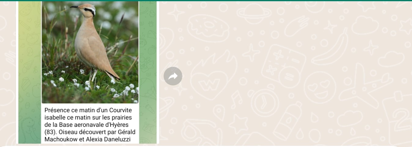 Dan stuurt Folkert Jan een foto door van een Renvogel in Frankrijk, de 13e waarneming van deze uit het verre zuiden (of Midden-Oosten) afkomstige steltloper voor het land. In 2021 mocht vogelend Nederland genieten van een exemplaar in het Noordhollands Duinreservaat. Ik beantwoord het appje van Folkert Jan met de woorden: “Hopelijk krijgen wij ook nog een leuke verassing uit het zuiden, bijvoorbeeld Vorkstaartplevier of Rotszwaluw“.