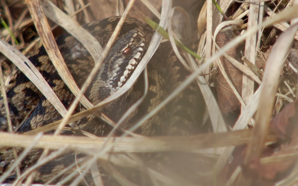 Na genoten te hebben van tientallen Heikikkers (het zijn er weleens meer geweest), ging ik weer op zoek naar reptielen. En wederom met resultaat, 7 Levendbarende Hagedissen en de eerste Adder van het jaar lieten zich mooi bekijken. Adder is in mijn beleving altijd al schaars tot zeldzaam geweest in de omgeving van Beetsterzwaag, nog nooit zag ik meer dan 1tot 3 exemplaren op een dag. De Adder is duidelijk in aantal afgenomen in de loop der jaren. Dus ik spring een gat in de lucht als ik deze fraaie, onschuldige maar gevoelige soort tegenkom. Zeker als het ook nog om een voor mij nieuwe locatie gaat.