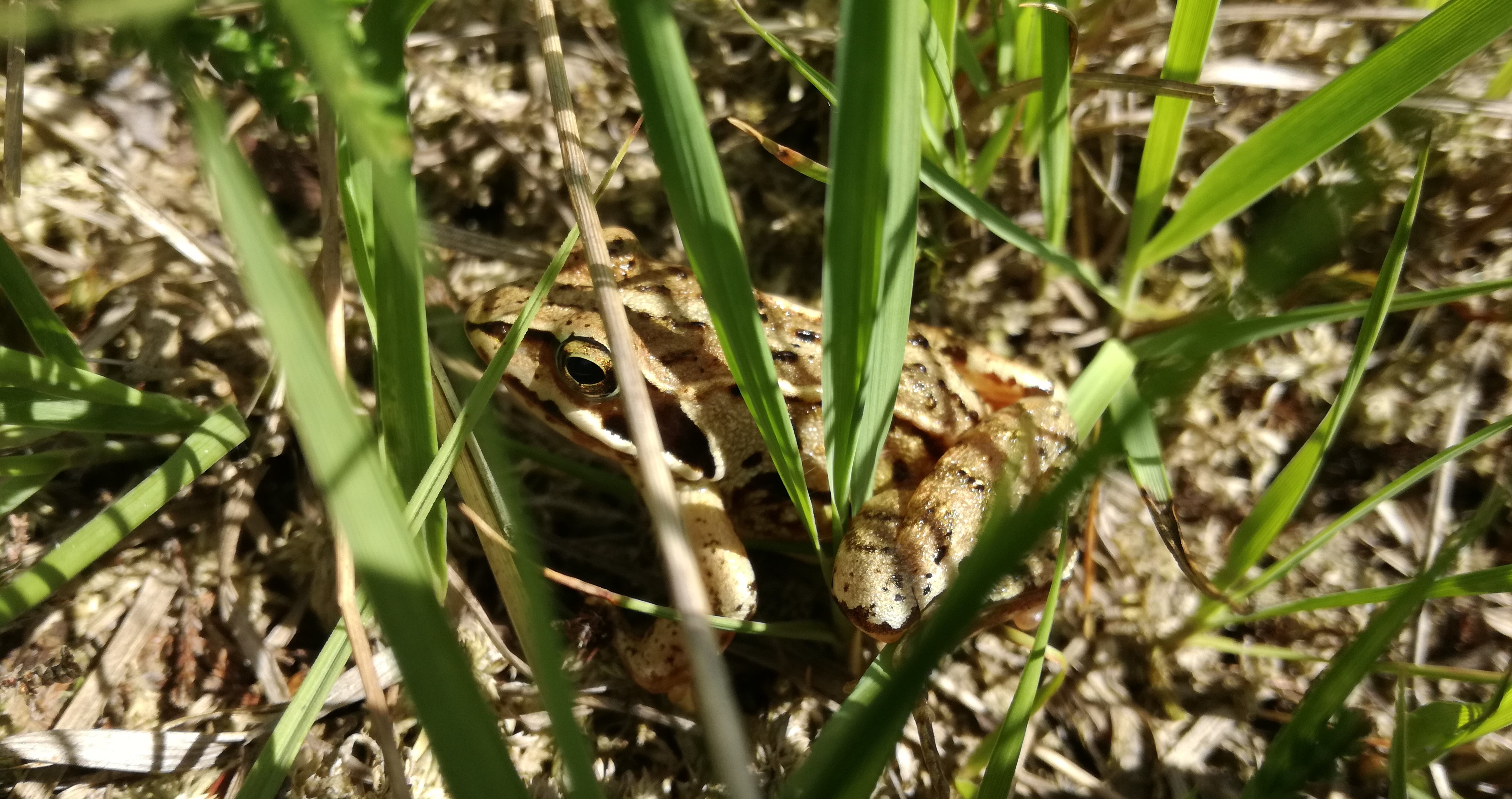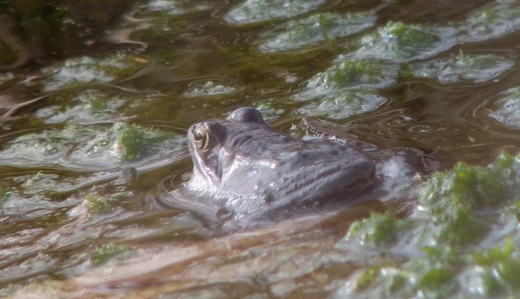 Op de vrij zwoele middag van 25 maart begonnen de Heikikkers in koor te roepen op de Liphústerheide. Altijd weer een fijn voorjaarsgeluid. De dieren horen was gemakkelijk, ze zien was een stuk lastiger, de meeste dieren zaten goed verscholen tussen vegetatie bestaande uit pollen pitrus, pijpenstrootje en veenmossen. Op zich jammer, aangezien de mannetjes in maart tot begin april prachtig paarsblauw van kleur zijn. Toch lukte het met een beetje geluk enkele exemplaren in het vizier te krijgen.