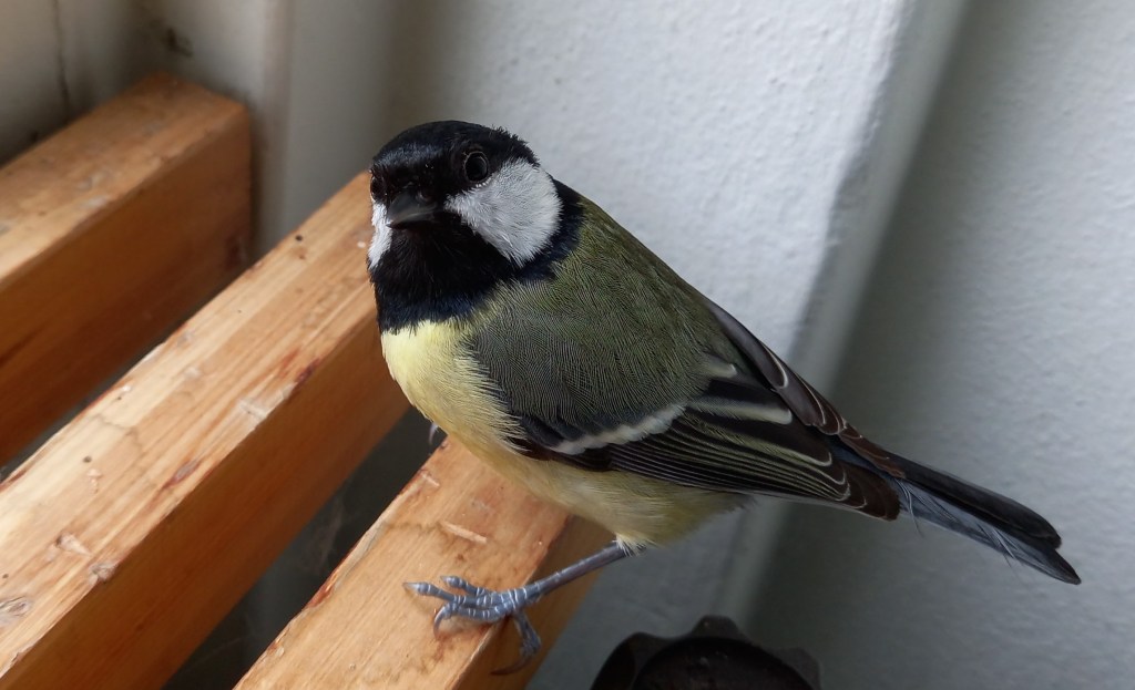 Koolmees (binnenshuis, na vangst vrijgelaten)