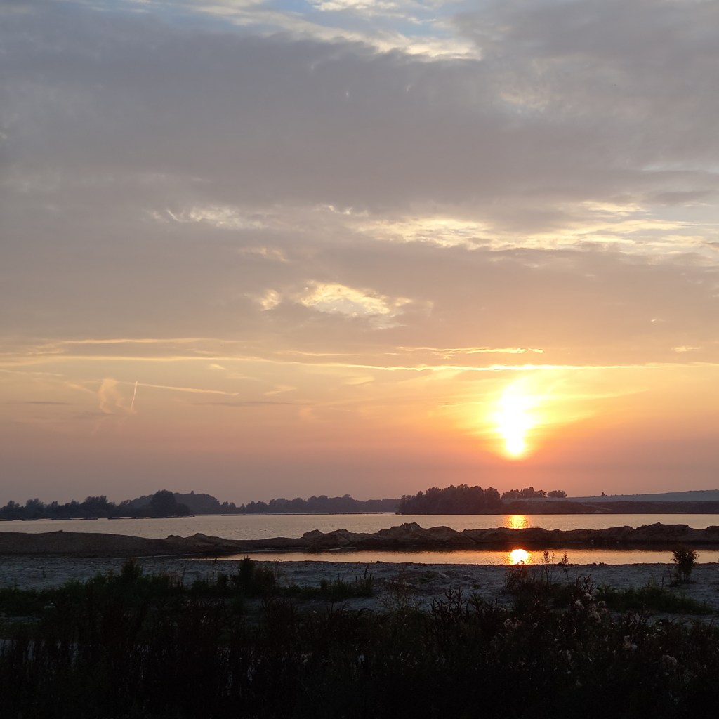 Zonsondergang zandwinplas