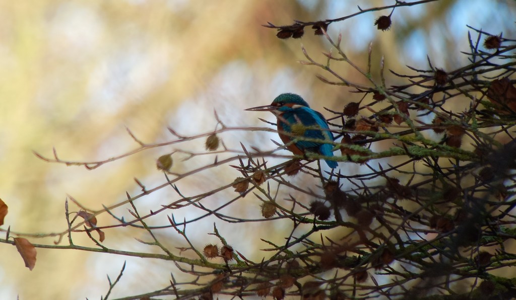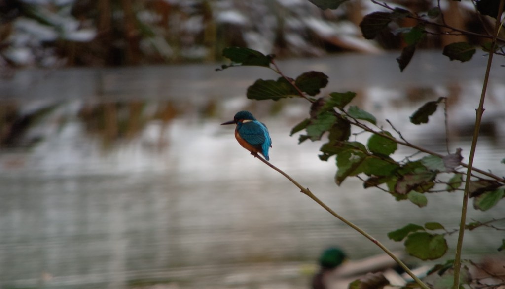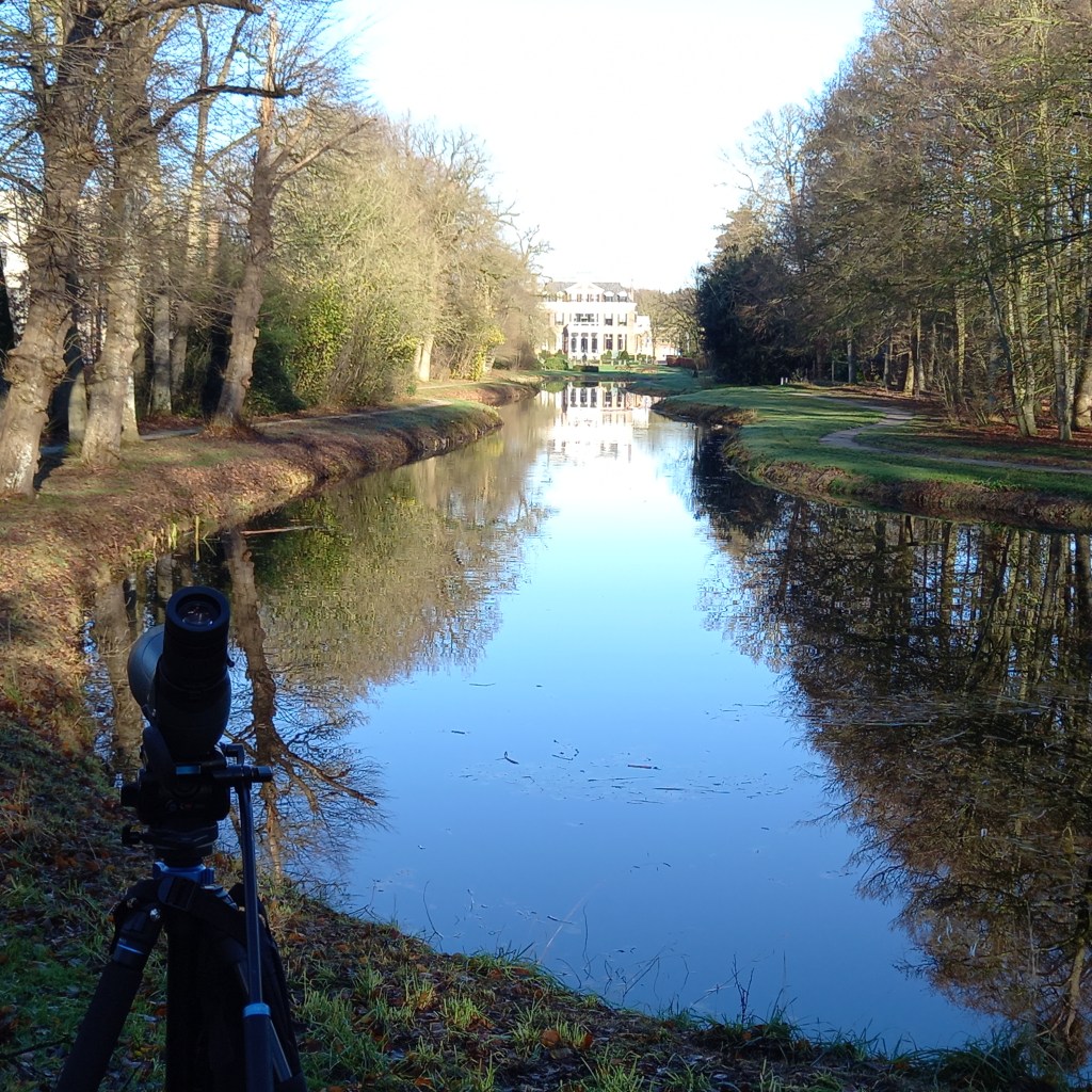 Ik sluit dit IJsvogel-blog af met een recente waarneming van een ‘stadsijsvogel’ in mijn huidige woonplaats Beetsterzwaag. Nou is Beetsterzwaag niet de meest waterrijke plaats van Friesland, maar de weinige plekken waar water is voldoen wel aan alle eisen van de IJsvogel. Min of meer kleine beschutte wateren tussen het groen. Ondiep, schoon en helder water, met vis erin, en genoeg overhangende takken en boompjes om te gebruiken als uitvalsbasis om te jagen en te foerageren. Park Overtuin, aan de westkant van Beetsterzwaag, is zo’n plek. In november 2023 zag ik de soort hier enkele keren, maar daar bleef het voorlopig bij. Tot 19 november 2024. Toen vloog een IJsvogel op vanaf een bruggetje en ging vervolgens vrij dichtbij in een boompje zitten langs het water. Helaas had ik toen mijn telescoop niet bij me, anders had ik leuke foto’s kunnen maken. In de week daarna zag ik dezelfde IJsvogel verschillende keren, maar vaak vloog deze op door recreanten en loslopende honden.