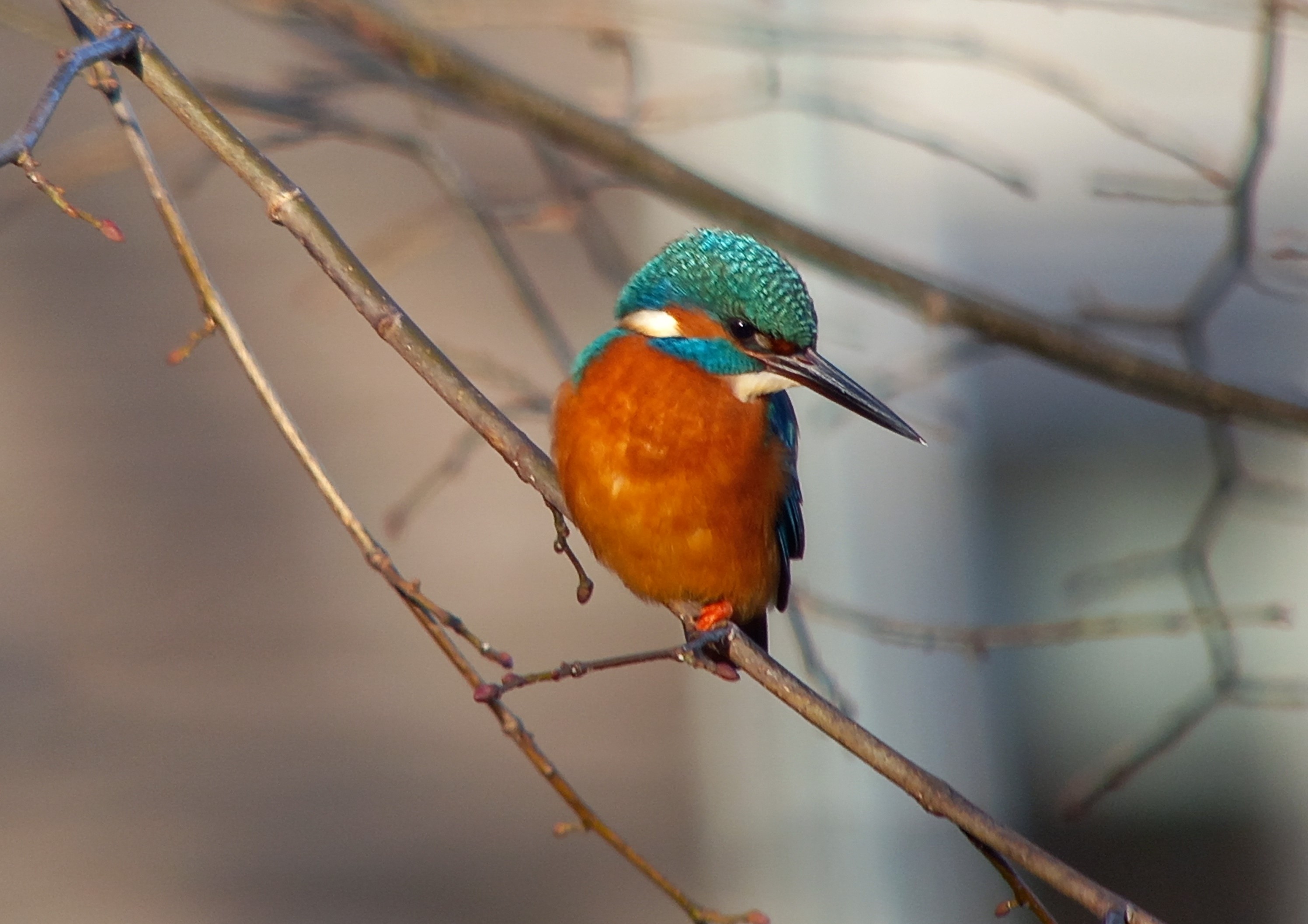 Op de vrijdagochtend van 29 november zat alles mee. Het was een rustige zonnige ochtend en er liep bijna niemand door het park. Ik zag meteen de blauwe flits langsvliegen. Hier bleef het gelukkig niet bij. De vogel ging in alle rust zitten op een overhangende tak boven het water, precies zoals afgebeeld in boeken, op websites, tekeningen en schilderijen. Ruim 20 minuten bleef de vogel op zijn tak zitten, ging vissen, ving regelmatig iets, soms een beetje poetsend. Ook zat de vogel enkele minuten doodstil, alsof hij verstijfde, dan deed het wat denken aan een opgezette IJsvogel in een museum of bezoekerscentrum.