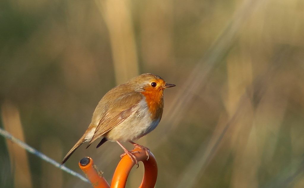 Verderop, in polder de Dulf, is het erg druk met vogels. Enkele honderden Kieviten met daartussen een enkele baltsende/territoriale vogel. Foeragerende Watersnippen en Witte Kwikstaarten. In de plassen vele honderden eenden, voornamelijk Wilde Eend, Kuifeend, Krakeend, Pijlstaart, Wintertaling, Slobeend en Smient. In kleine aantallen Tafeleend en Bergeend. Een Roodborst gaat mooi dichtbij in het zonnetje poseren. Van deze gelegenheid maak ik dankbaar gebruik, ik weet leuke plaatjes te schieten. De vogel is druk met foerageren, doet zich tegoed aan de vele vliegjes rondom struiken en vlak boven de grond. Ik sluit de dag af bij de zandwinplas, waar ik nog een handjevol Ringmussen zie bij een stukje bebouwing. In de zandwinplas zelf zitten ook leuke aantallen eenden en ganzen, maar geen soorten die nieuw zijn voor de patch. Wel laat een IJsvogel zich langdurig mooi bekijken. De vogel maakt schokkerige bewegingen met zijn kop en roept af en toe. Een overvliegende Zeearend zorgt kortstondig voor opwinding onder het vele aanwezige waterwild. Een mooie afsluiter van de dag.