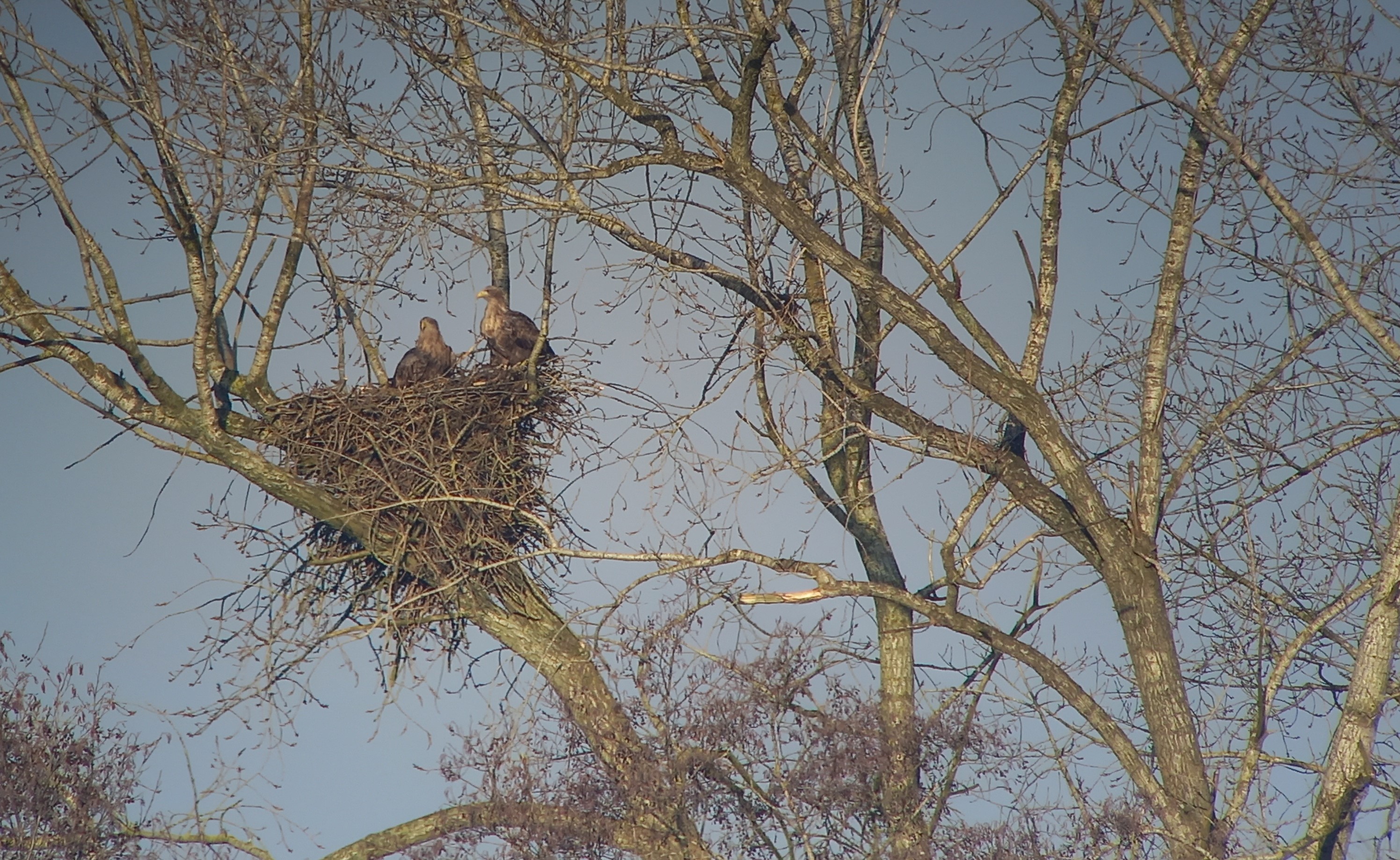 Omdat de determinatie (nog) niet zeker is, het al 15:00 is en de vogel schijnbaar is opgevlogen door een vliegtuig, gaan we uiteraard niet halsoverkop naar Stadskanaal. Hopelijk wordt de vogel morgen teruggevonden. We blijven ook niet te lang hangen in het paviljoen, want we willen nog een bezoek brengen aan het nabijgelegen Friesche Veen. Een prachtig moerasgebied bestaande uit een grote plas met daaromheen indrukwekkende populieren, eiken, en elzen- en berkenbos. Via de Frieselaan bij Paterswolde, lopen we langzaam het gebied in. 2 Groene Spechten verwelkomen ons, zijn even zichtbaar, maar zitten grotendeels verstopt in de bomen. In het Friesche Veen zien we al gauw 2 Zeearenden op het nest zitten, altijd weer een mooi gezicht. Even later vliegen de vogels richting het westen, wellicht om een uitstapje te maken in De Onlanden. Op het pad naar de vogelkijkhut zit een verzwakte Knobbelzwaan, voorzichtig lopen we eromheen. De kwetsbare en tegelijk machtige zwaan reageert geïrriteerd, maar we mogen er langs. Vanuit de hut nog enkele Grote Zaagbekken, Slobeenden en een Grote Zilverreiger.