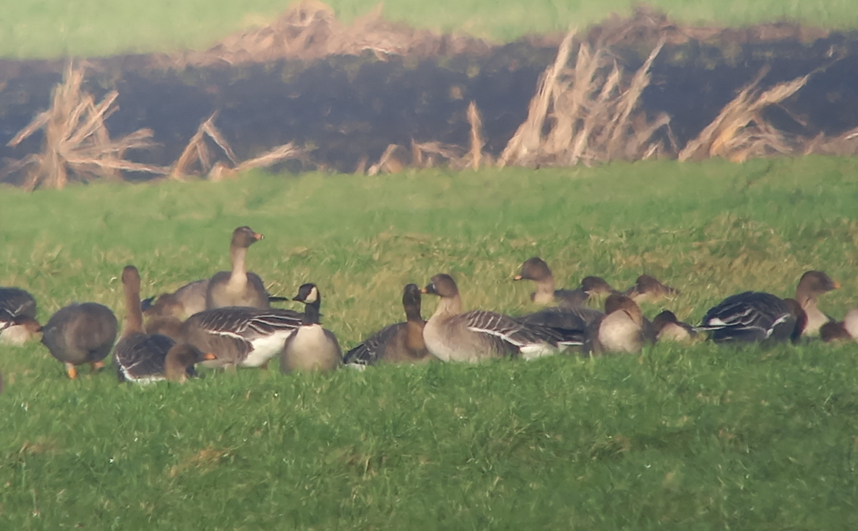 De volgende ochtend appt Folkert Jan me dat hij eerst een rondje Paterswoldse Meer gaat doen, wat dingen moet regelen en dan zouden we later op de ochtend samen richting Stadskanaal gaan. De waarschijnlijke Hutchins’ Canadese Gans wordt iets na 08:30 alweer gemeld. Die zit nog mooi tussen de vele Kol- en Toendrarietganzen, alleen nog even er naartoe en de vogel met eigen ogen zien. Ondertussen weer enkele appjes van Folkert Jan, de Grote Zee-eenden lijken te zijn gevlogen, onvindbaar. Wel heeft hij een goede kandidaat IJsduiker ontdekt. En dan lijkt mijn vermoeden van een ‘mogelijke duiker’ te worden bevestigd. De vogel zit op flinke afstand en Folkert Jan gaat vanaf een andere plek bij het meer zoeken. Niet veel later meld hij de vogel als zekere IJsduiker. Had ik naar alle waarschijnlijkheid dus toch een duiker in het vizier de dag ervoor. Echter, ik treur niet, ik gun Folkert Jan de ontdekking van harte en Folkert Jan houdt de vogel even in beeld. Ik besluit die kant snel op te fietsen.